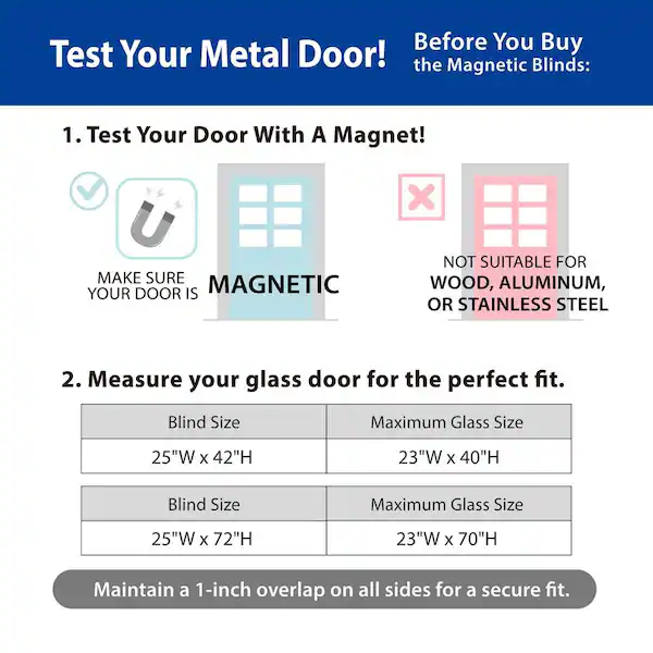 Package Includes: 1- 25"W x 42"L Magnetic Blind