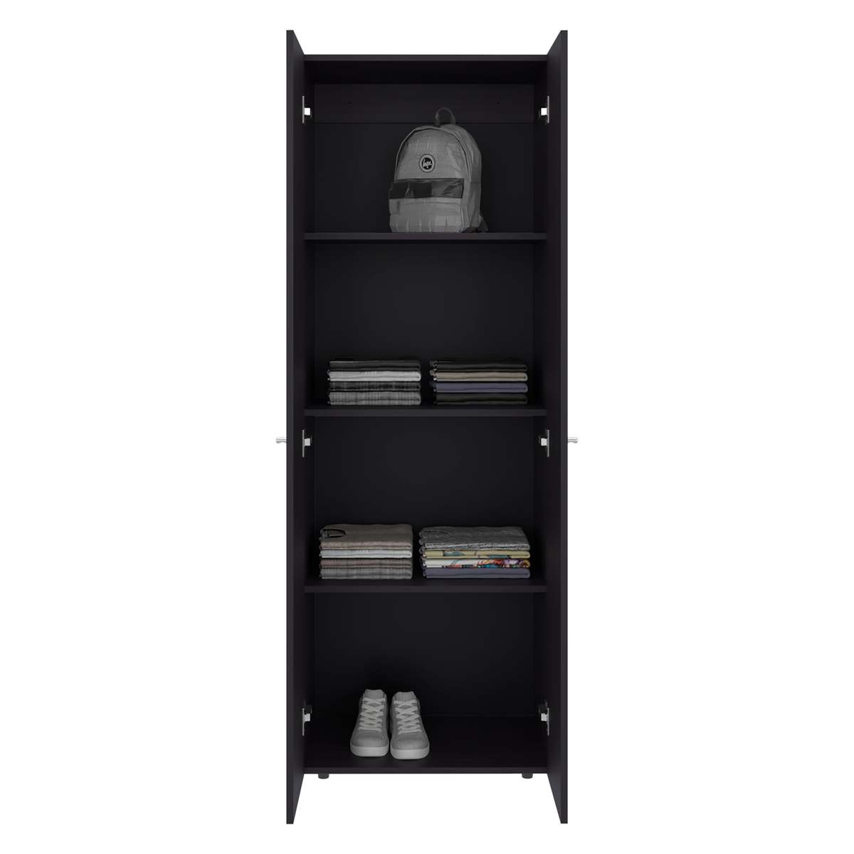 Ample Storage Capacity: Includes four large shelves behind two full-height doors, perfect for storing clothes, shoes, linens, or accessories.