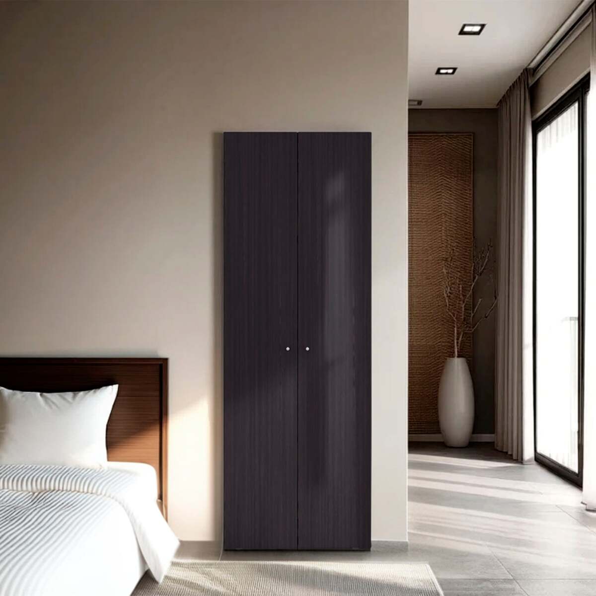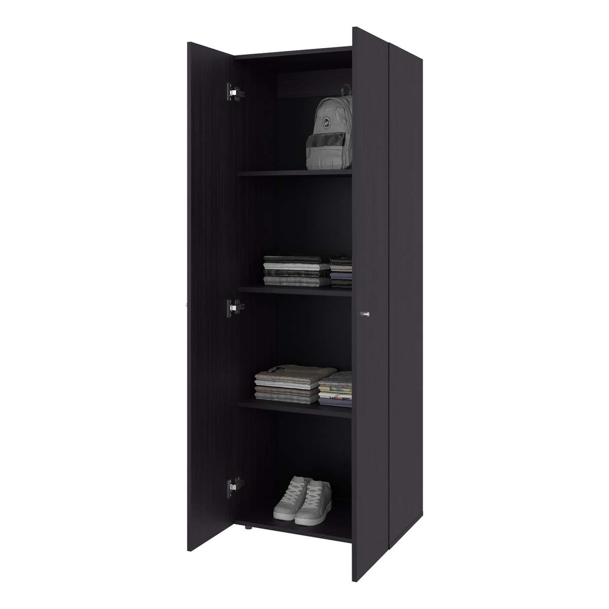 Black Wengue Armoire, 66.9" H, 2 Doors, 4 Shelves - Bedroom