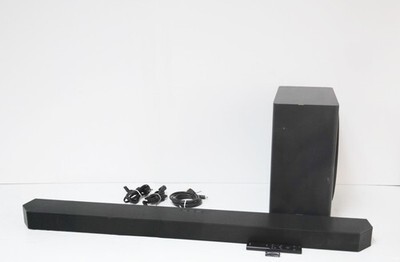 Description: Includes Soundbar, Wireless Subwoofer, Remote Control with batteries, 2 x Power Cables, HDMI Cable. Scratches and scuf son the bodies. Chips on the sub edges.