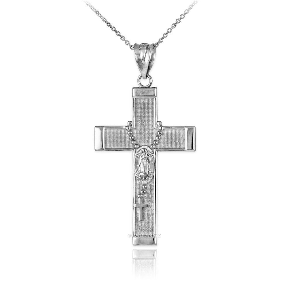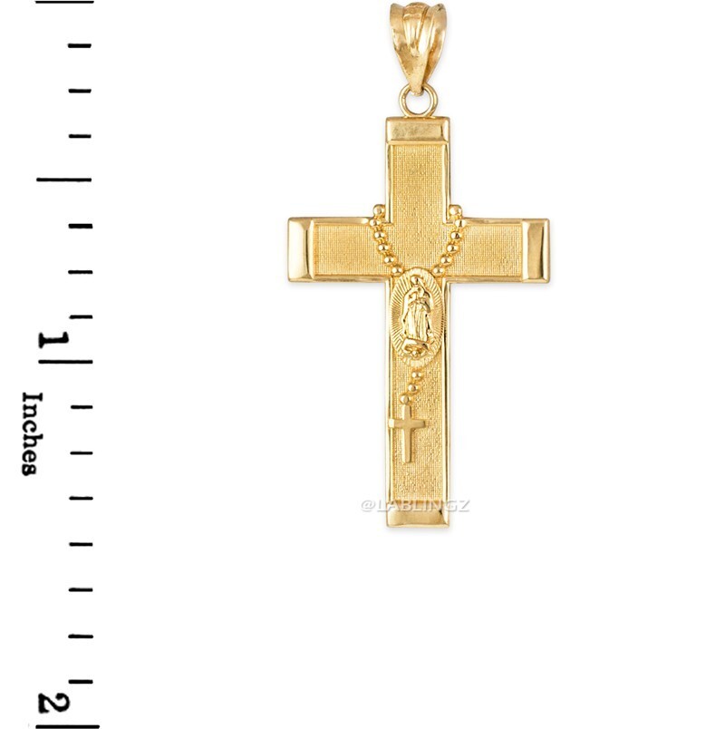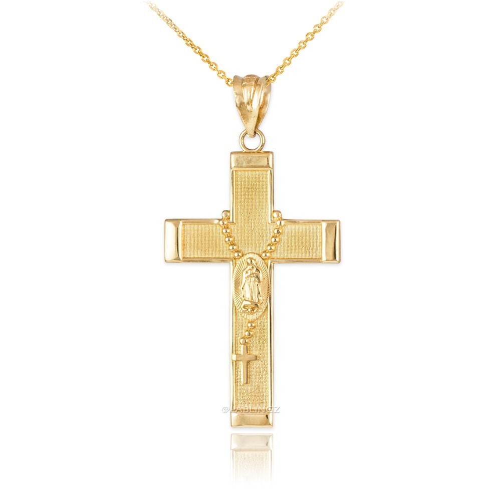 Gold Latin Cross Virgin Mary Rosary Necklace 10k 14k Yellow, White, Rose