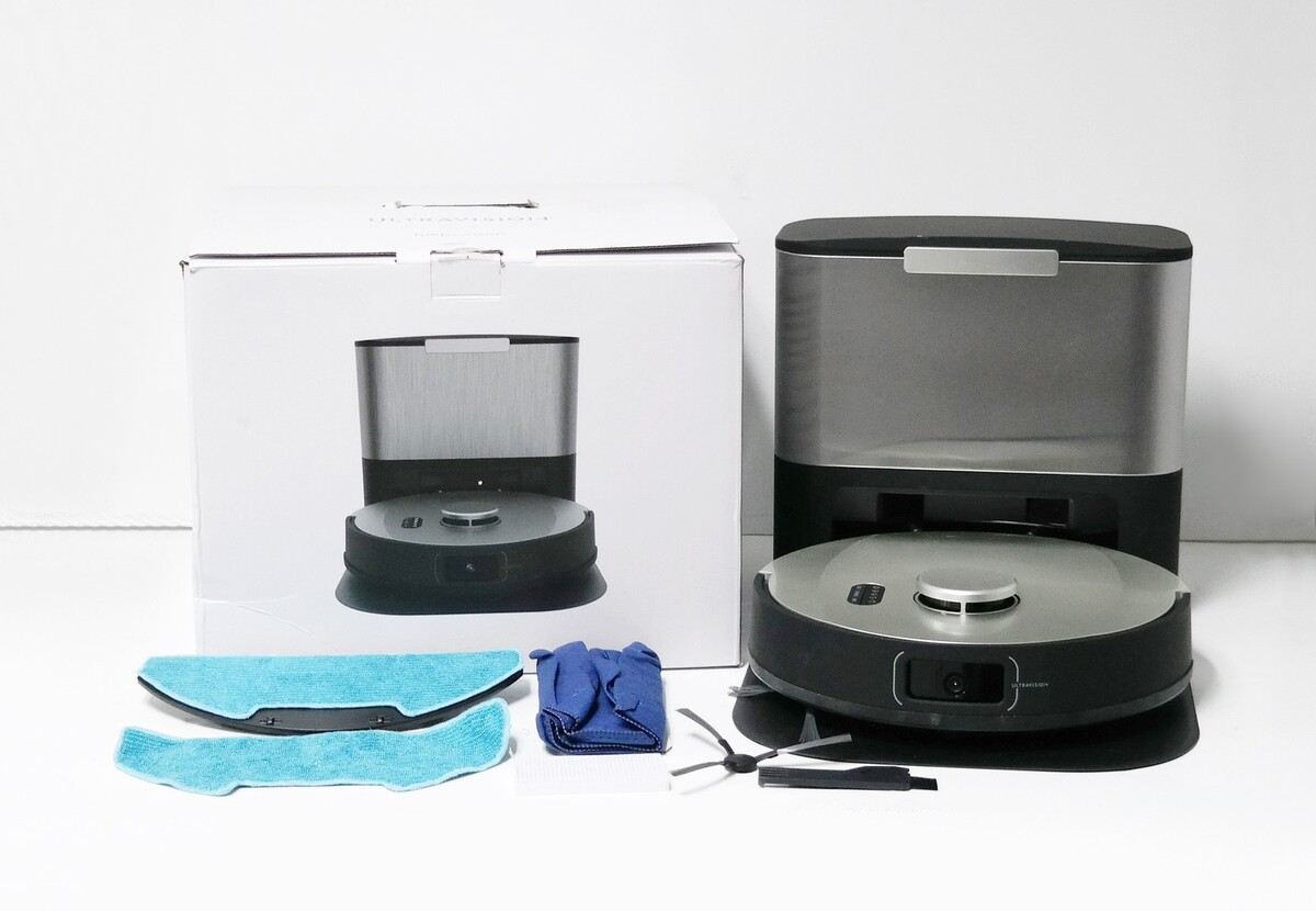 Description: Includes Retail Packaging, UltraVision, Self-empty charging station, Charging bed, 2 x Side brush, Cleaning tool, Spare filter, Mop attachment, 2 x Microfiber mopping cloths, Spare dust bag. Scuffs on the body of the vacuum.
