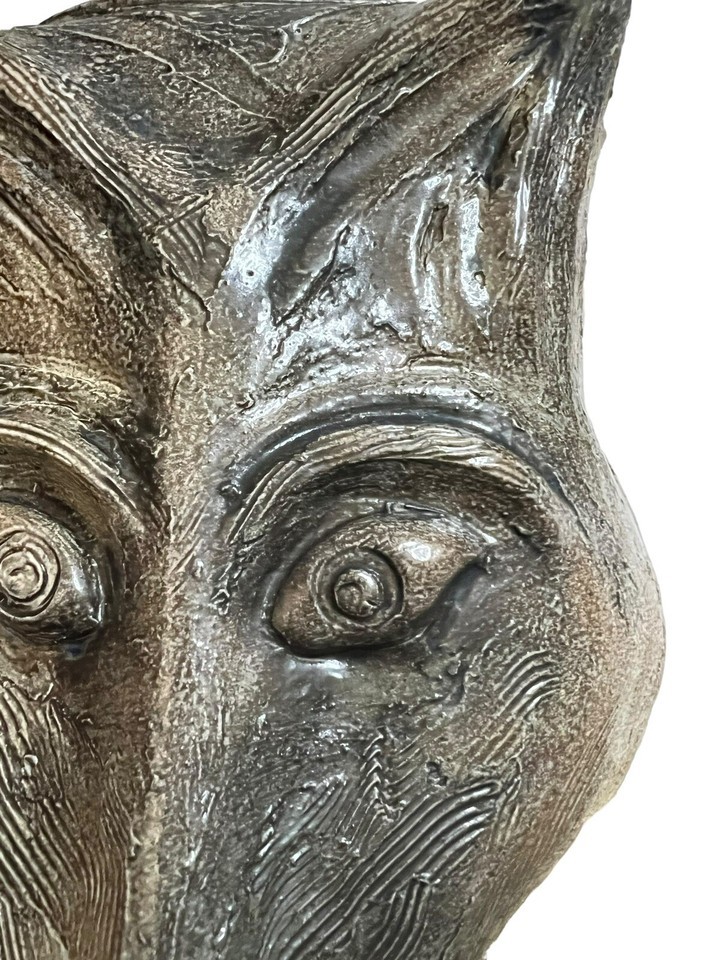 Signed Ceramic Figural Animal Wolf Dog Wall Pocket Vase Hanging Planter OOAK