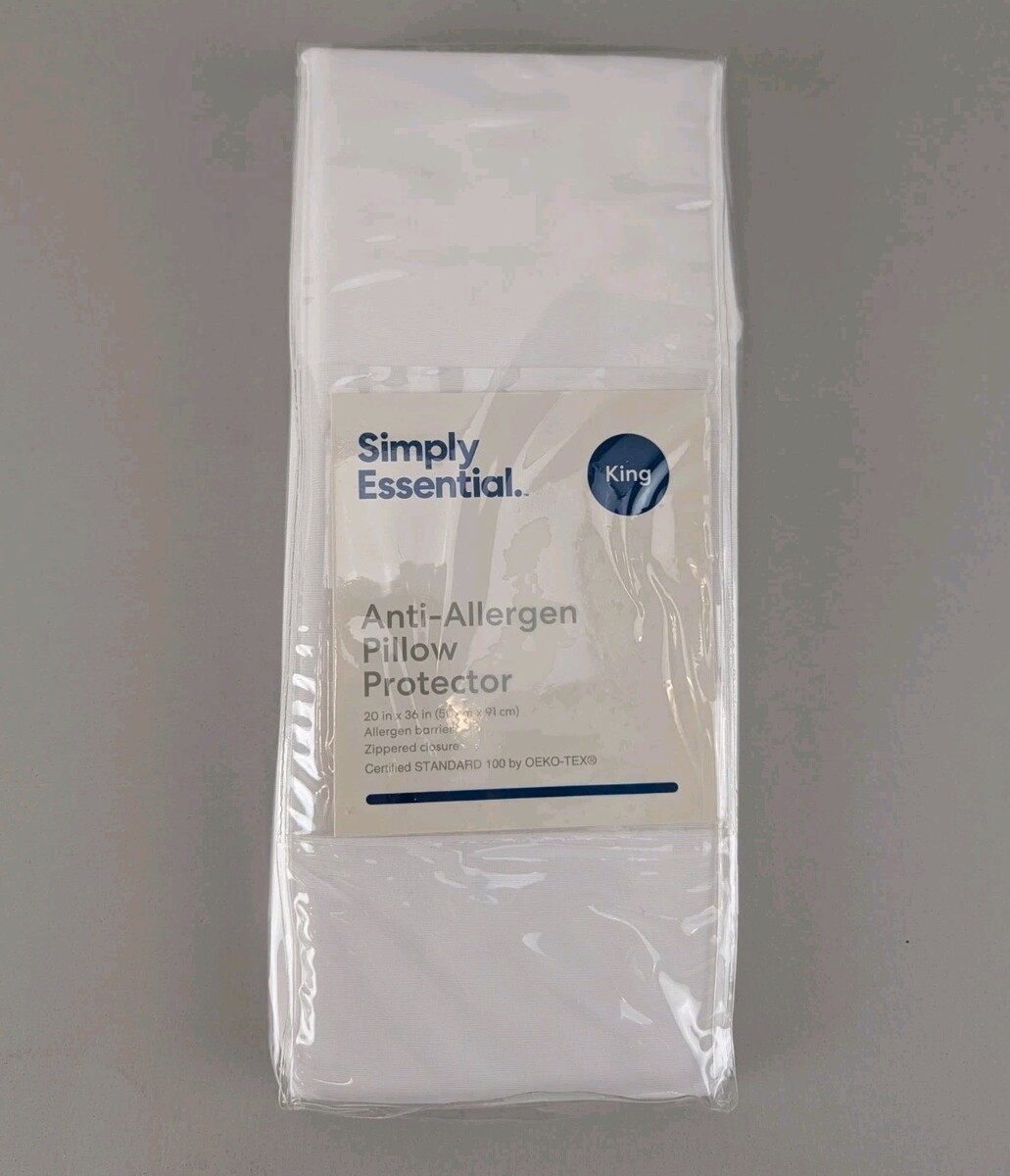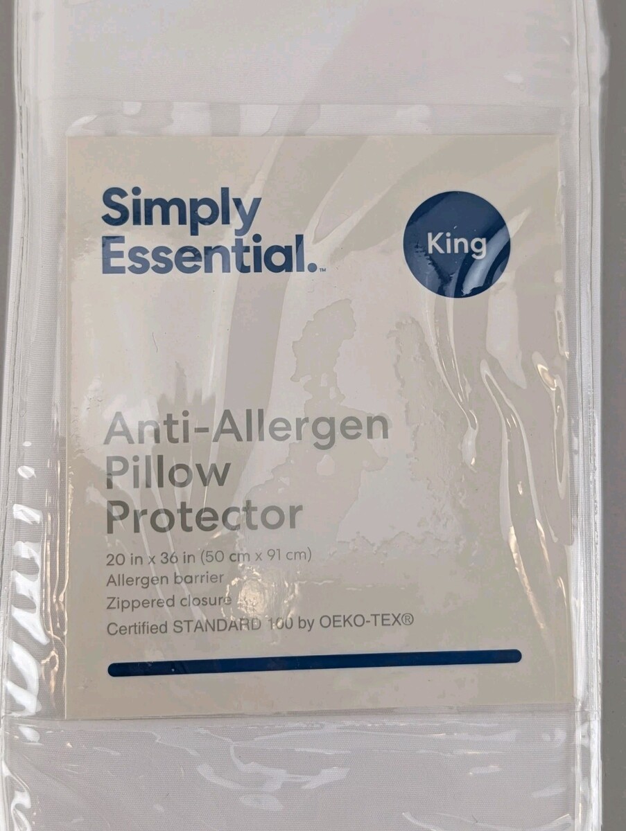 Simply Essential Anti-Allergen King Pillow Protector White Zipper Closure New. Condition is New with tags. Shipped with Standard Shipping.