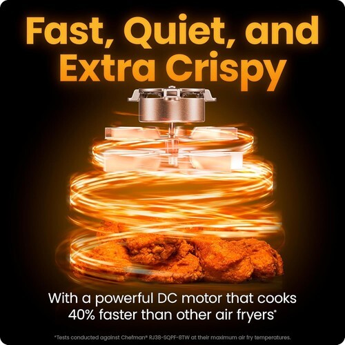 * SUPERCHARGED CONVECTION POWER: The next evolution in air frying A high-tech DC motor powers this TurboFry air fryer, cooking up to 40% faster than other Chefman air fryers with a max temperature of 450F for crispier, juicier results.