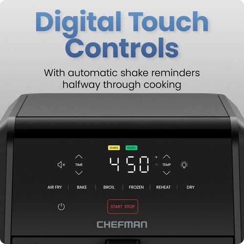 * 6-IN-1 VERSATILITY: More than just an air fryer This all-in-one digital air fryer features a built-in touchscreen UI with six cooking functions: Air Fry, Broil, Dehydrate, Convection Bake, Reheat, and Cook Frozen Foods for ultimate versatility.
