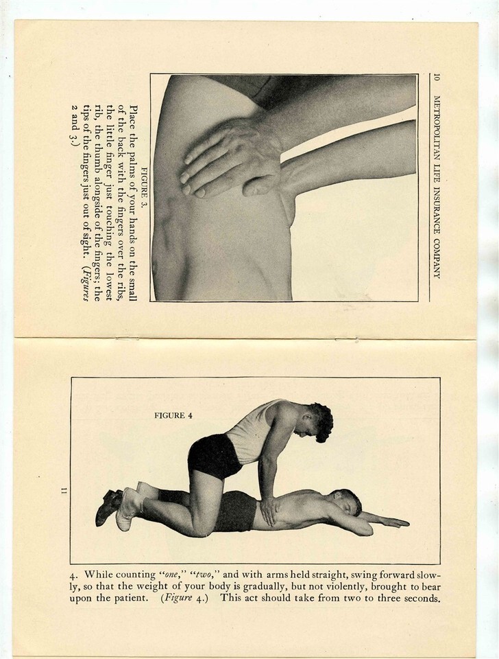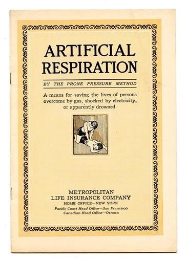 A 16 paged illustrated booklet published by the Metropolitan Insurance Company in 1925. Artificial Respiration Booklet Prone Pressure Method 1925