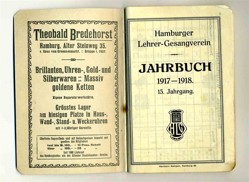 Jahrbuch 1917 1918 Calendar Hamburger Teacher Singing Club Germany Music