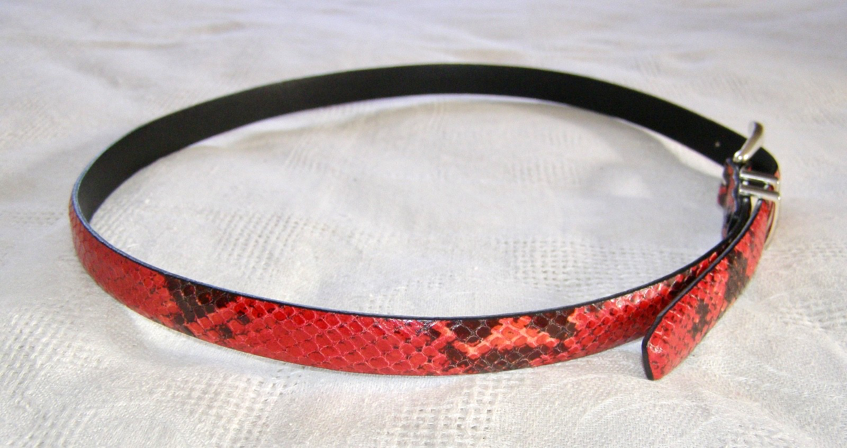 DYED RED PHYTON SKIN BELT w/SILVER TONE BUCKLE+DOUBLE BELT STAYS |