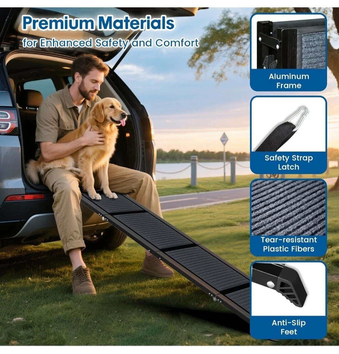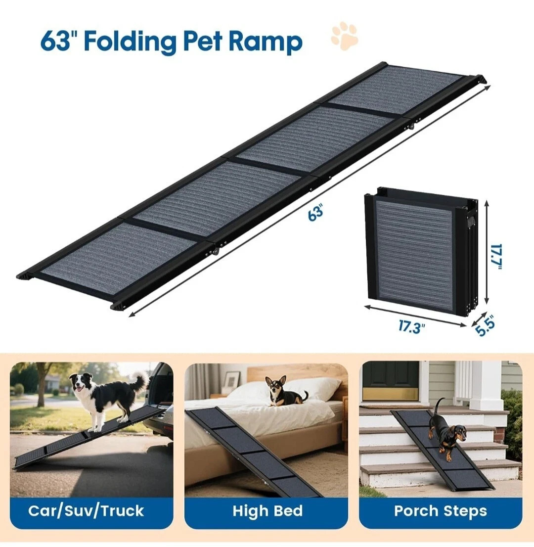 HBTower 63" Long & 17.3" Wide Folding Dog Ramp for Car, SUV & Truck