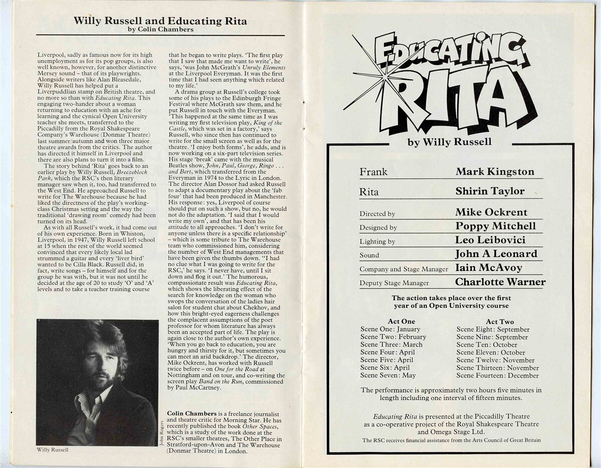 an Educating Rita Program from the Piccadilly Theatre in London during. 1981 Starring Mark Kingston and Shirin Taylor