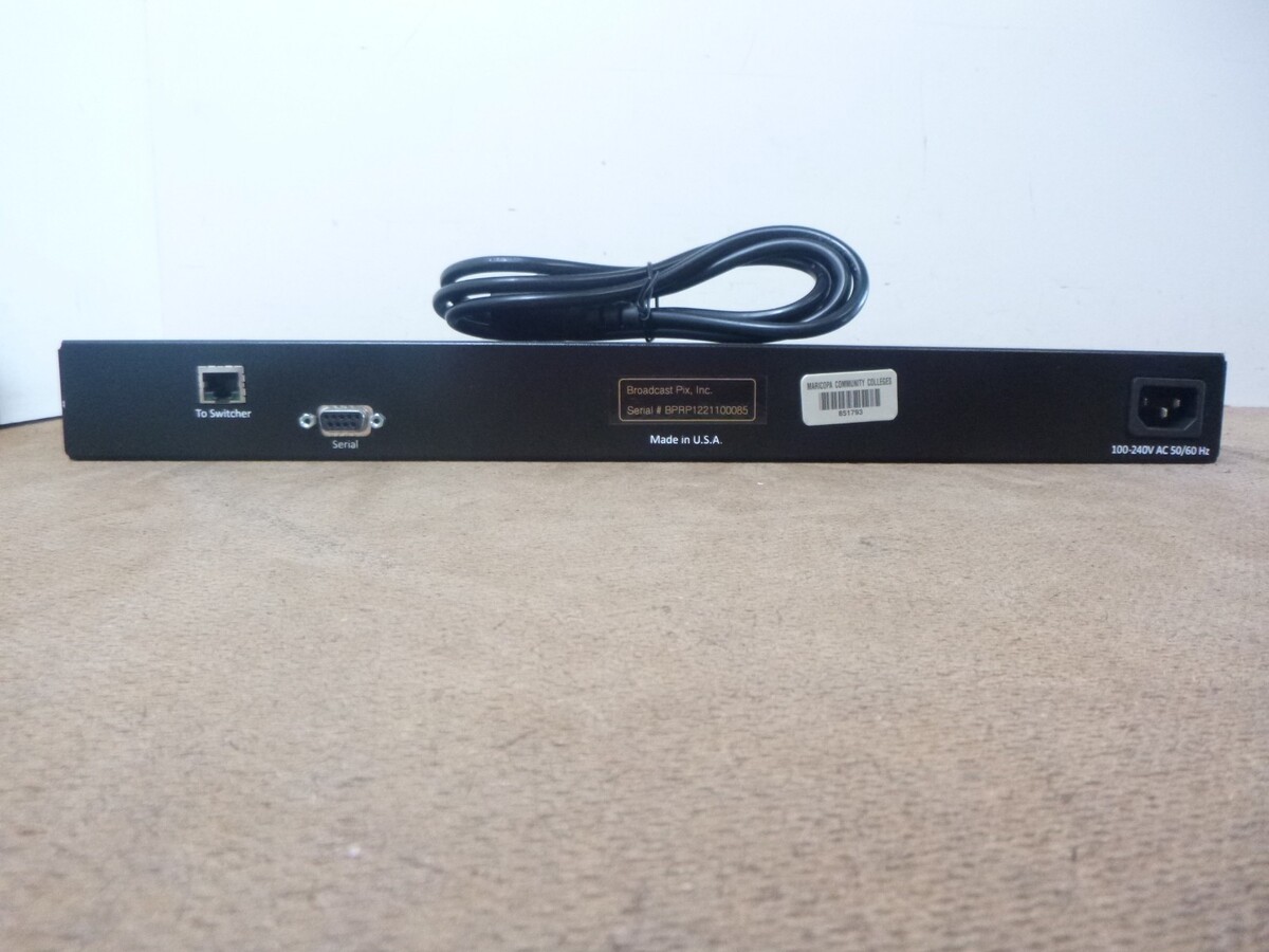 This switcher was surplus from a community college and has an ID sticker on the back. This unit powers on but I don't have the accessories needed to test it further. This will come with a power cord, but no other accessories are included.