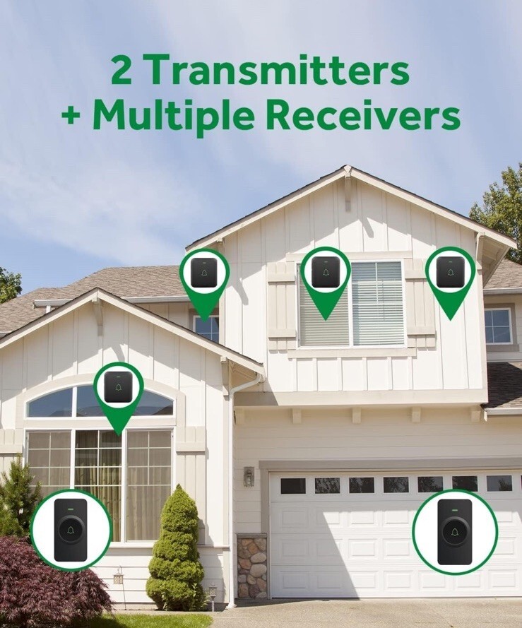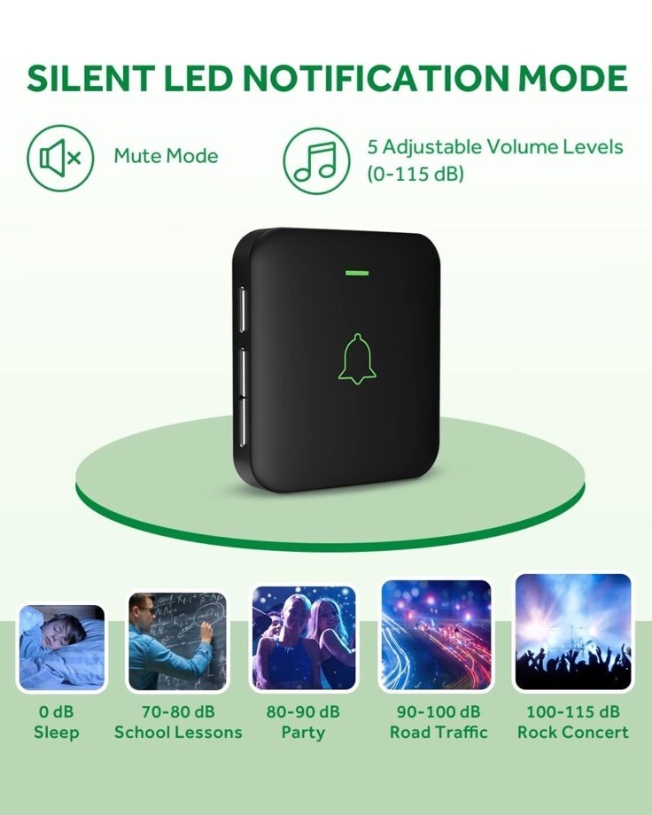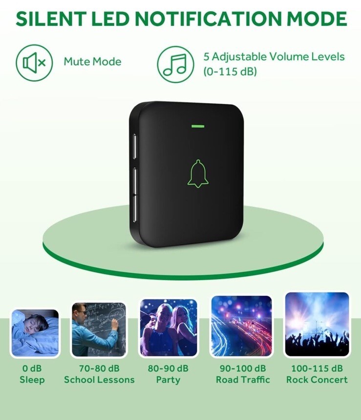 Wireless Door Bell, Mini Waterproof Doorbell Chime Operating at 1000 Feet wit...