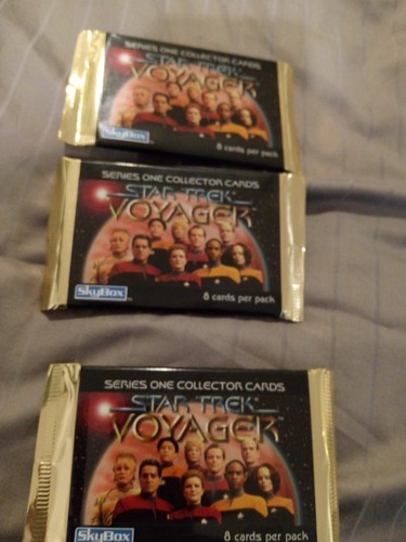 3 Star Trek Voyager Series One Trading Cards Sealed 8 Card per PACK Skybox 1995.