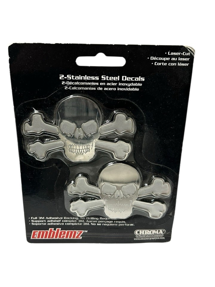 Chroma Metal 2 Stainless Steel Decal Emblem Skull/Skeleton Chrome Laser Cut 3M