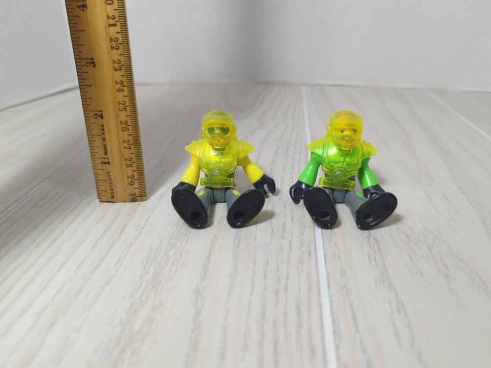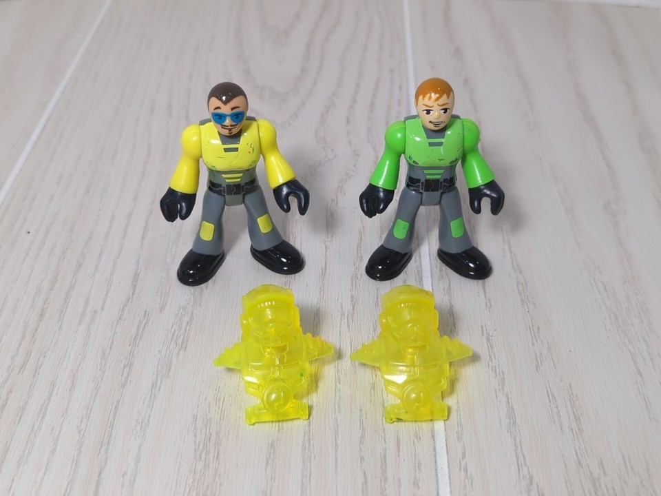 Fisher Price Imaginext Dino Rider figures lot 2 green yellow w/ helmets
