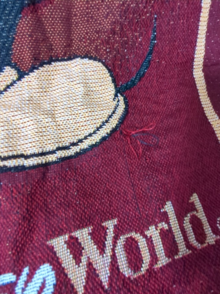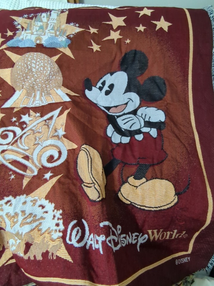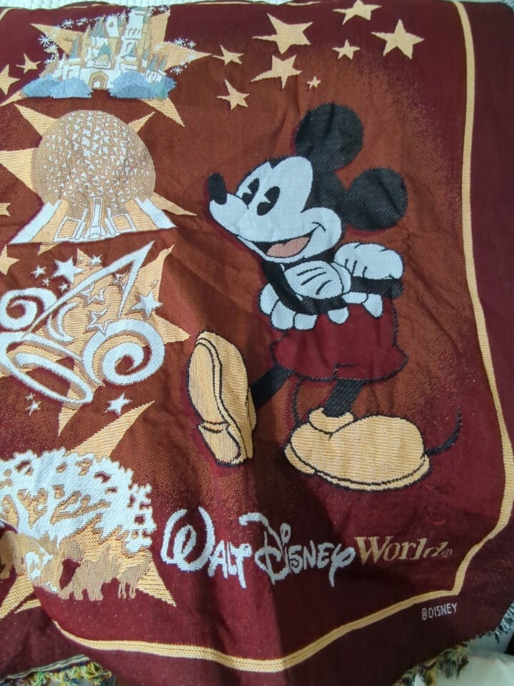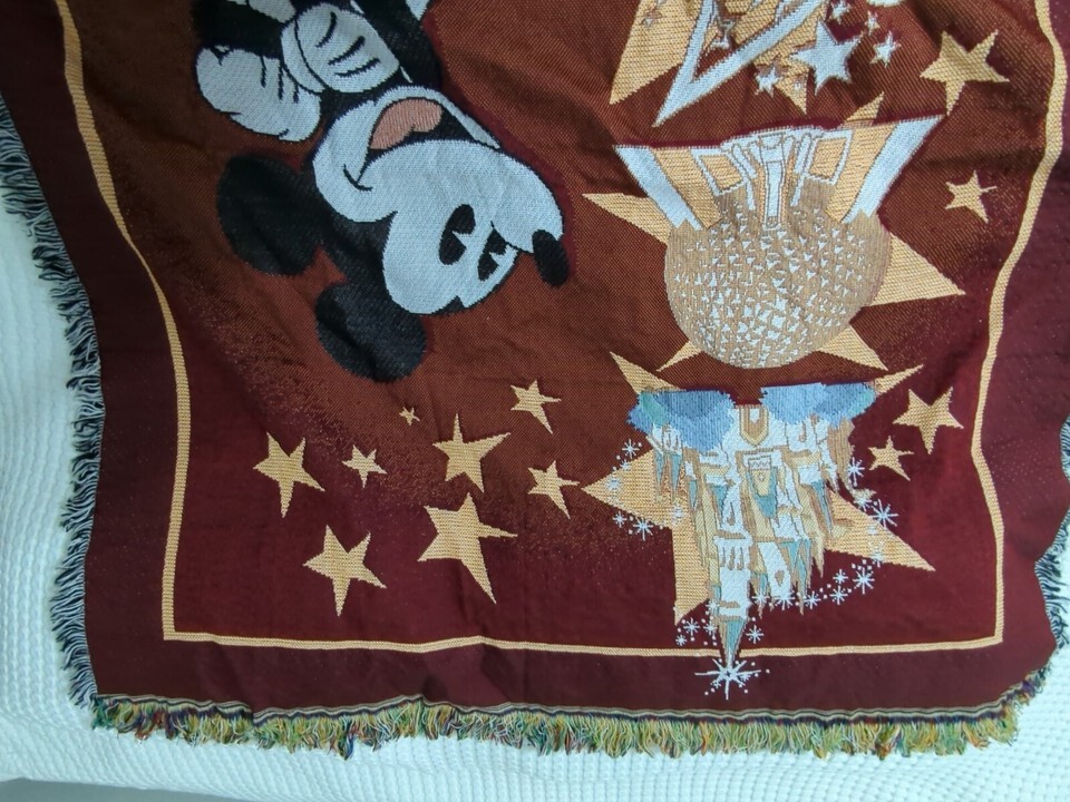 Walt Disney World Mickey Mouse Tapestry Woven Fringed Throw Blanket Epcot Red