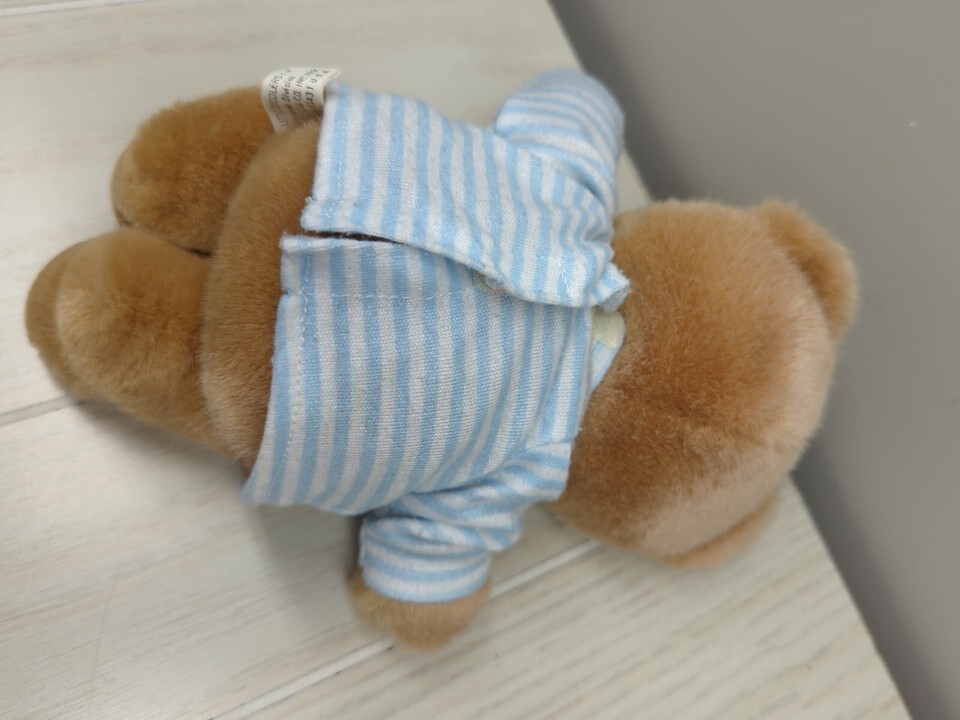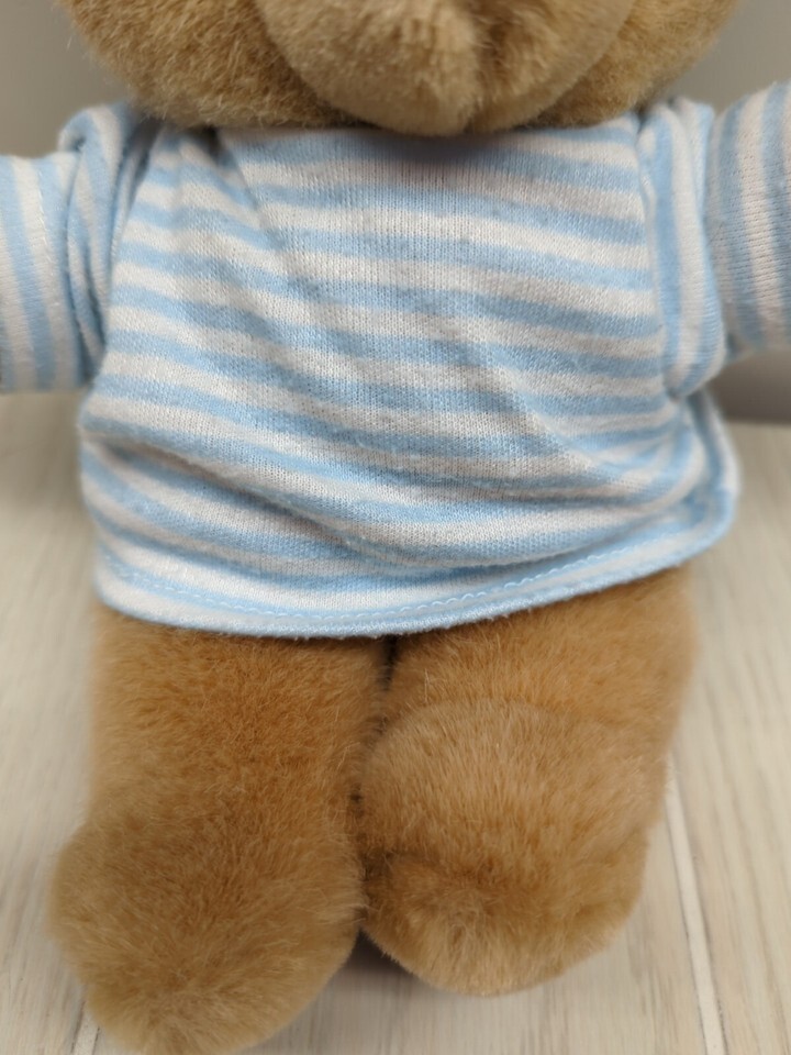 Douglas Little Cuddlers small teddy bear tan brown plush blue white stripe shirt