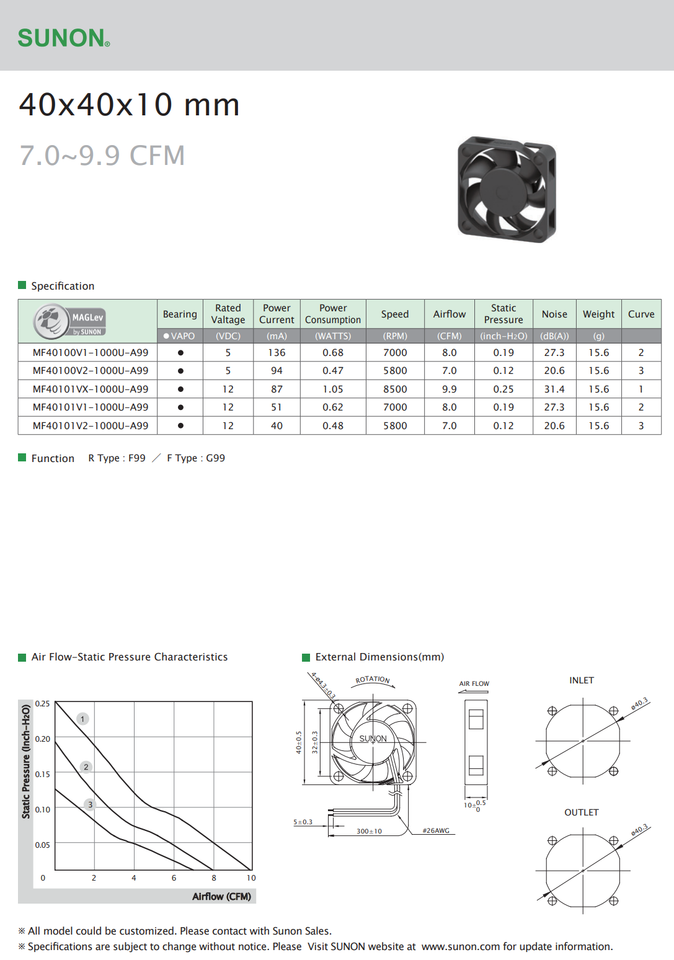 MF40101V2-10000-G99 SUNON MagLev 40x40x10mm and similar items