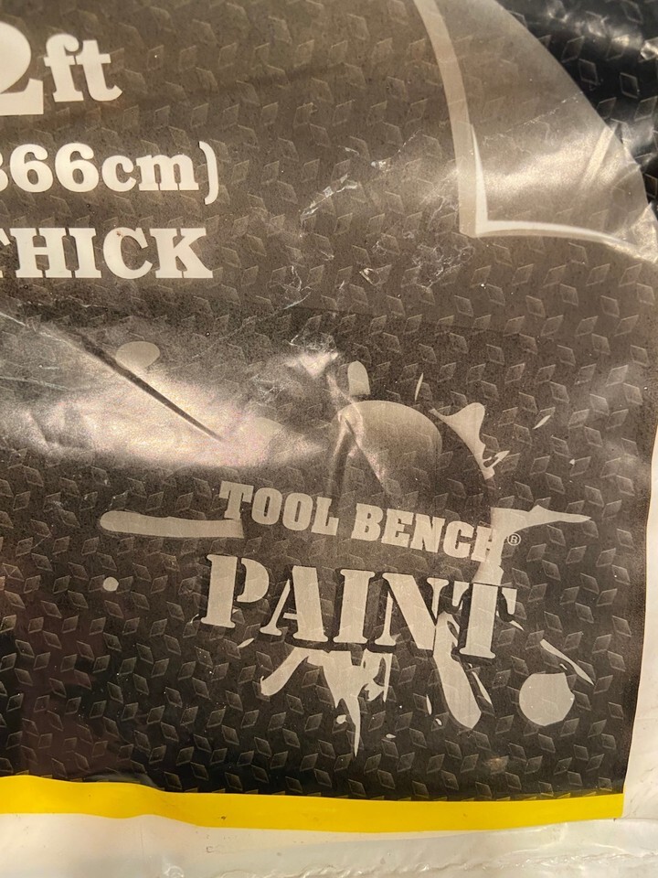 The plastic paint drop cloth is new in the package made by Tool Bench