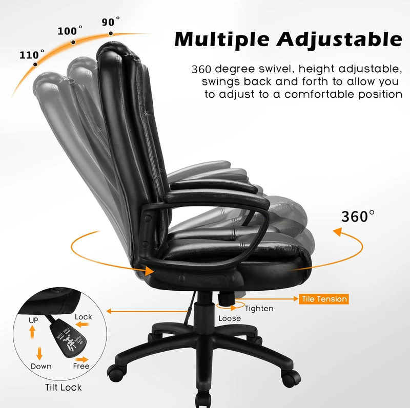 Big and Tall Office Chair fits Every People:Our computer chairs feature a heavy-duty design, larger than most chairs on the market. Equipped with SGS-certified gas lift cylinder, they can support up to 400 pounds. Simple and easy to use, they are suitable for most people.