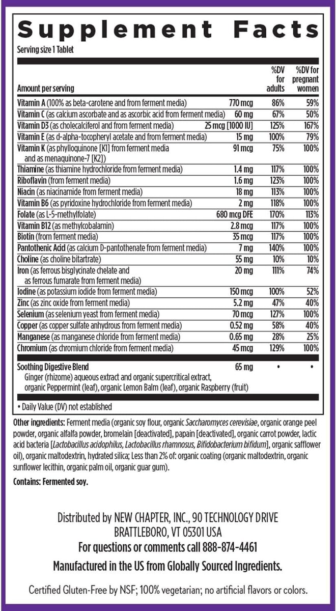 New Chapter Prenatal Multivitamin Tablets, One Daily (30 Veg Tabs) Exp 8/27