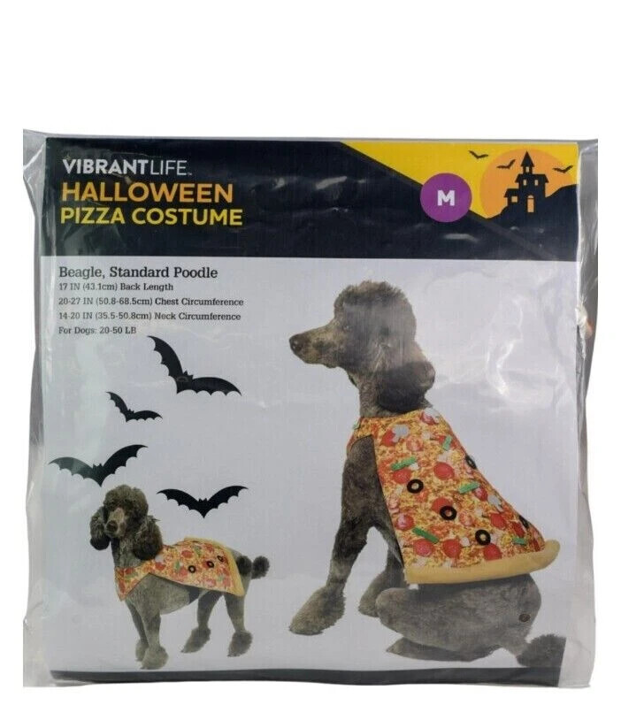 Get ready for Halloween with this Vibrant Life Pizza Slice Costume for your furry friend! Perfect for medium-sized dogs weighing 20-50lb like Beagles and Standard Poodles. This multicolor costume is designed to bring out the fun and playful personality of your pet during Halloween parties or photoshoots.