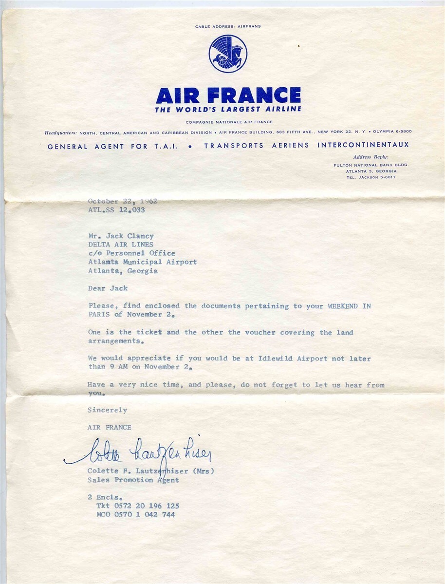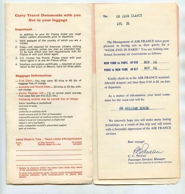 Air France Ticket Jacket Ticket Boarding Passes Tags Letter 1962 Weekend Paris