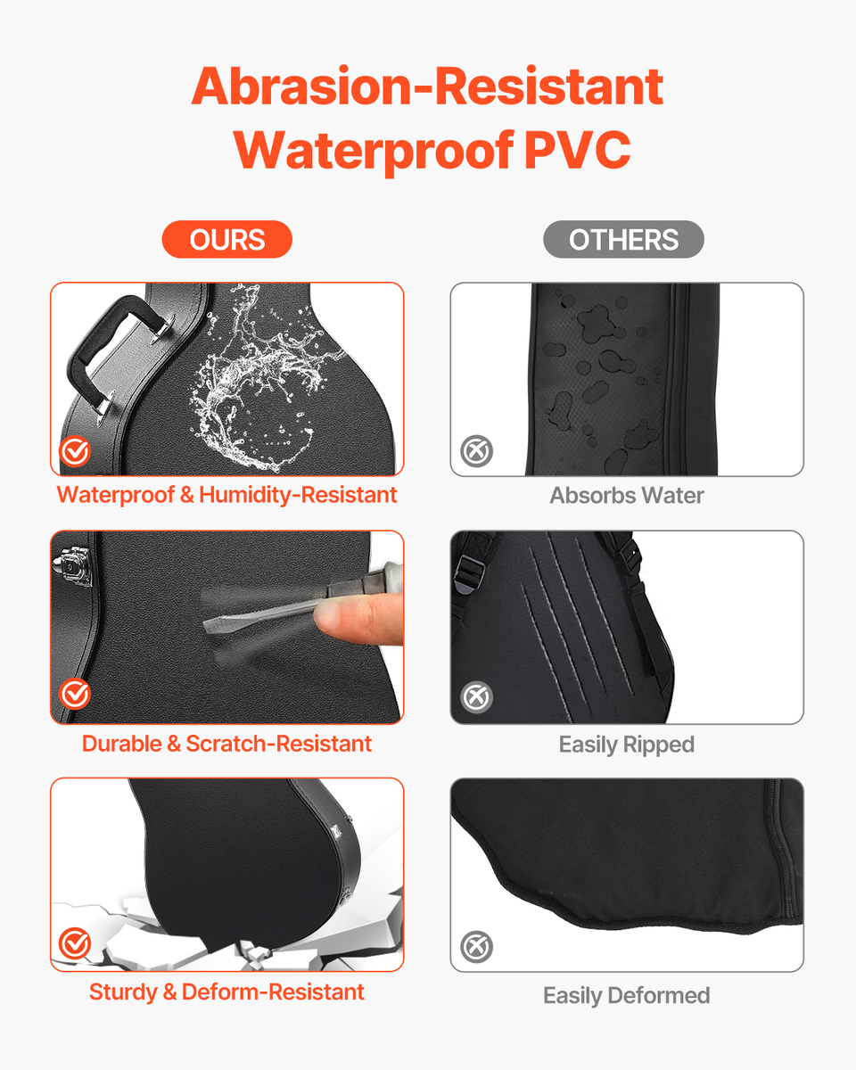 Sturdy Durable: The outer shell of this guitar case is made of PVC covering layer and plywood. It is not only sturdy and durable, but also waterproof and dump-proof, effectively keeping the guitar from damage.