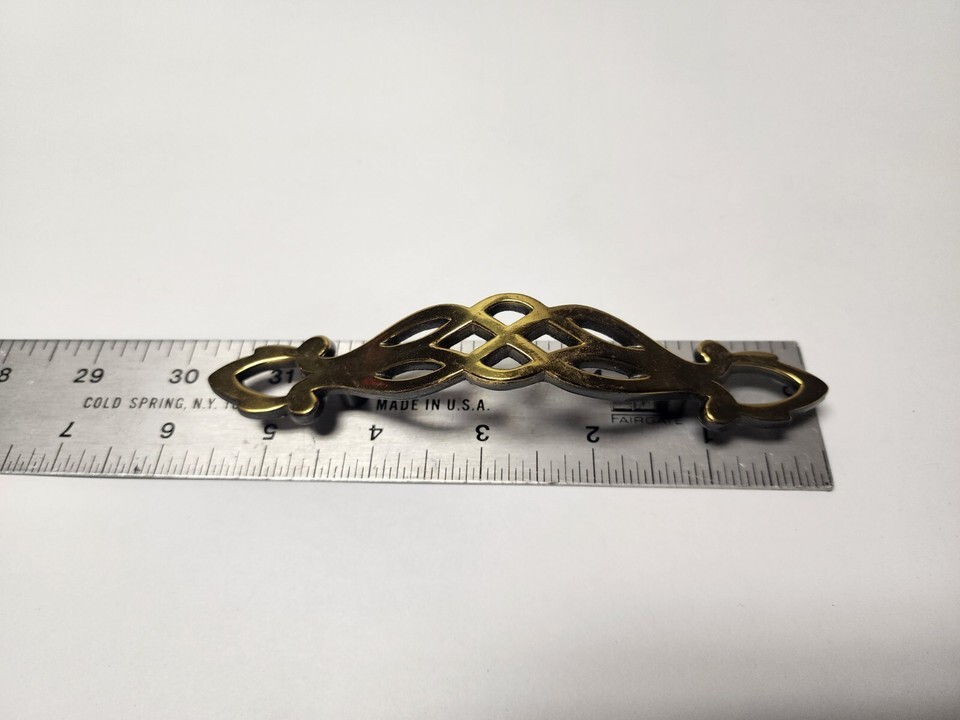 6 pcs. of Hickory Hardware P365-LP Queen Ann Drawer Pulls 3" Hole Centers they have a polished brass finish on the face and black underneath. These were packed in bulk boxes and are surplus from a furniture manufacturer.