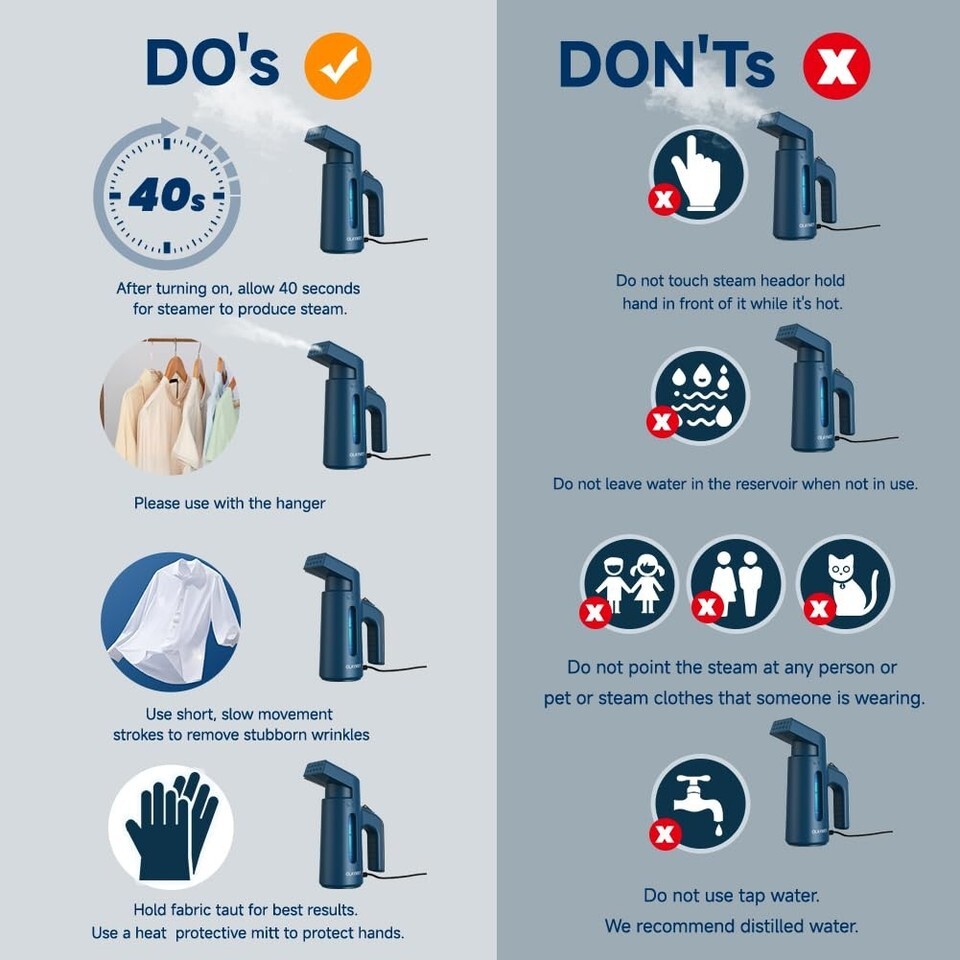 Garment Steamer, Measuring Cup, English Instruction Manual |