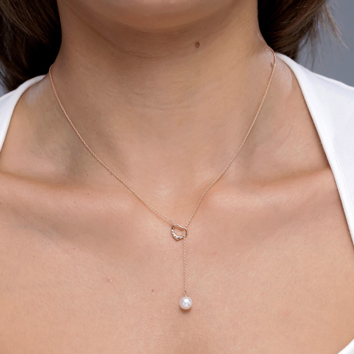 ANGARA Akoya Pearl Lariat-Style Heart Necklace in 14K Gold (Grade: AAA | 8mm)