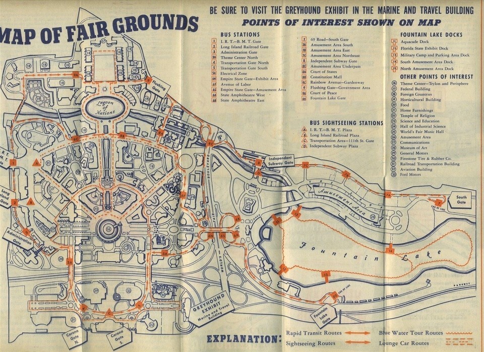 Greyhound New York World's Fair Around the Grounds Transporation Map 1939