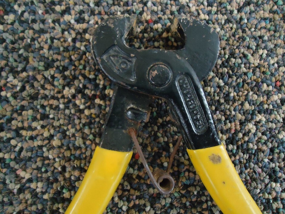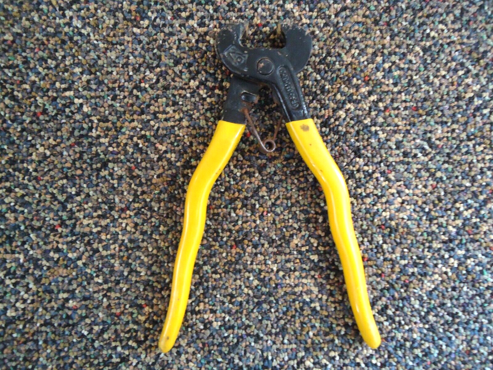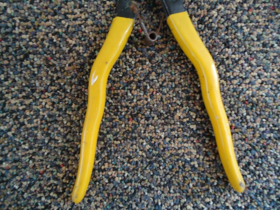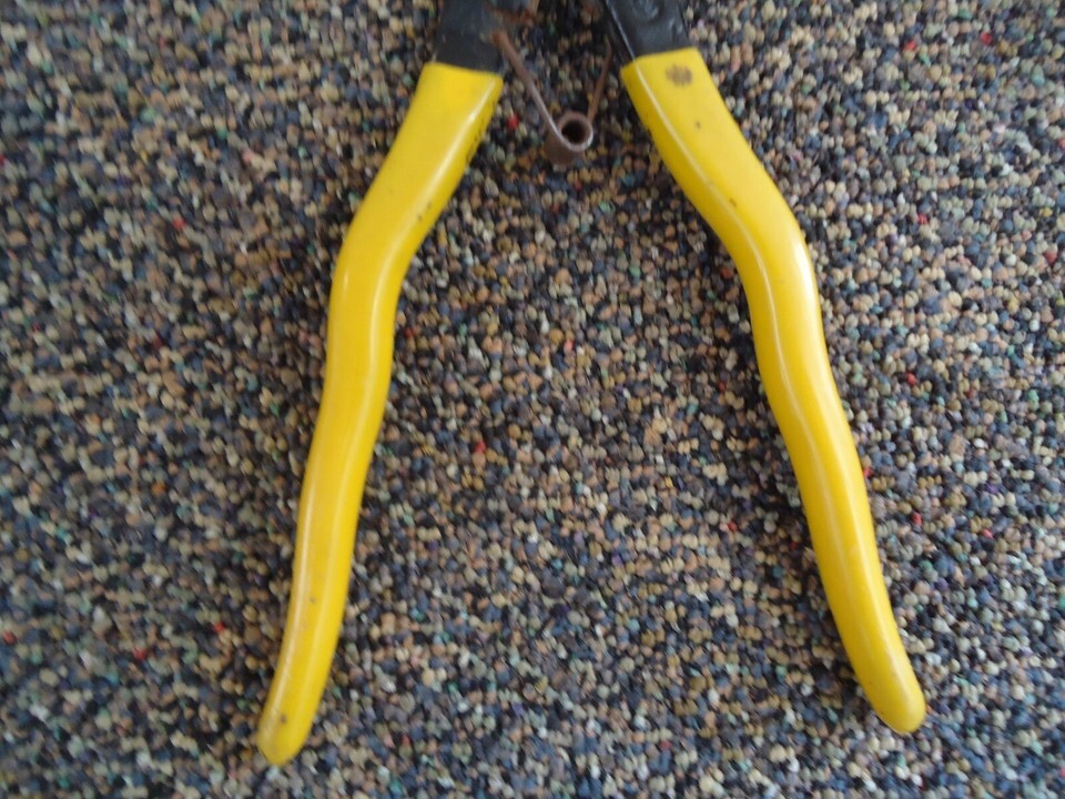 Here is a Drop Forged Yellow Handle Nail Pulling Pliers " Great Collectible Item ".This is a must for any collector,or decorator wanting that vintage retro look. If you have any concerns or questions about this item(s) please ask before bidding / purchasing because this item(s) is being SOLD AS IS.Thank You.-(PC114)