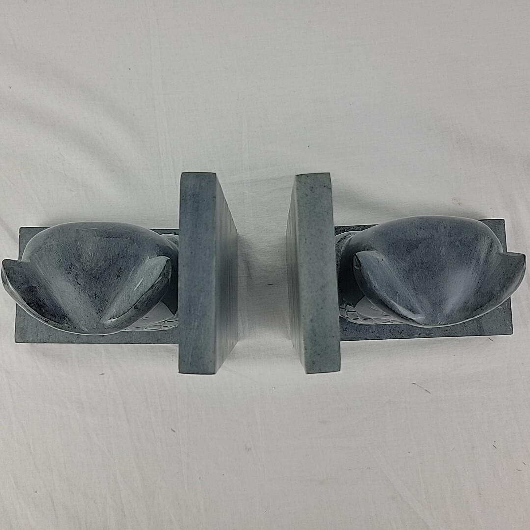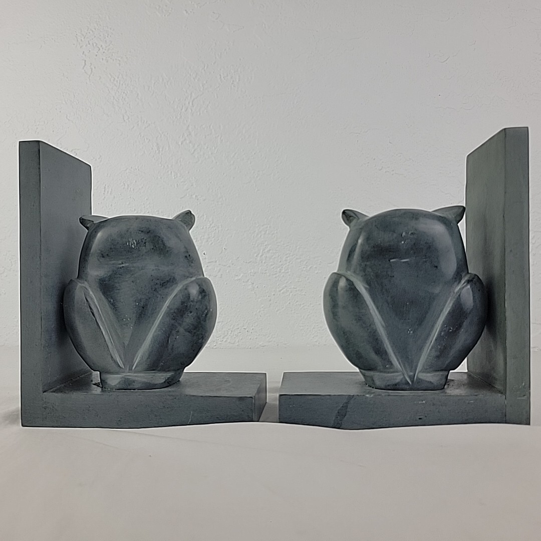 Owl Bookend Pair Hand Carved 2 Gray Sculpted Soapstone Bookshelf 8" Figurine GVC