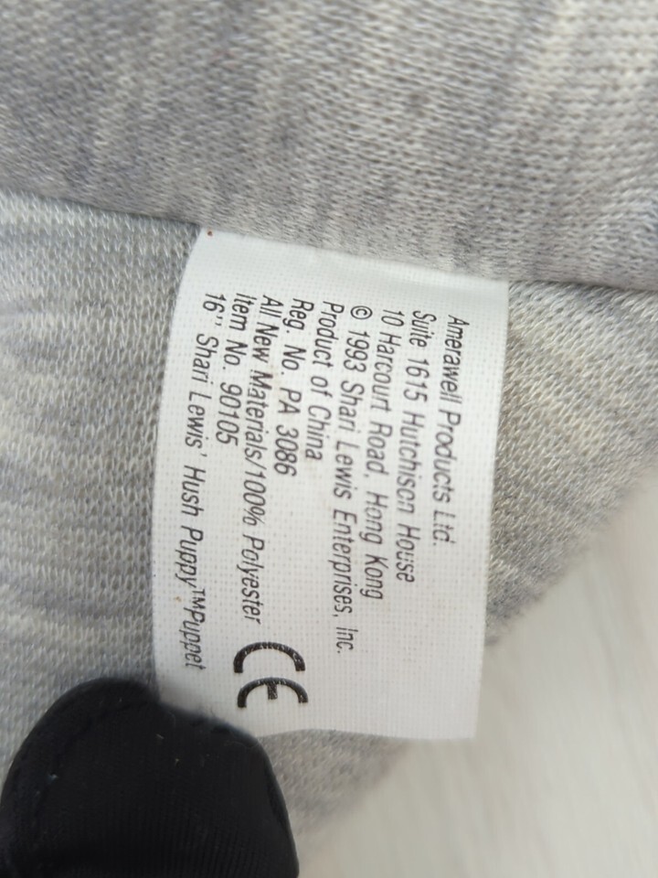 Shari Lewis FLAWED Hush Puppy Hand Puppet Gray Blue Shirt Dog vintage 1993 w/tag