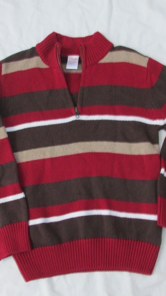 Boys Gymboree brown tan red wide striped sweater holiday 5-6 pullover 1/4 zip