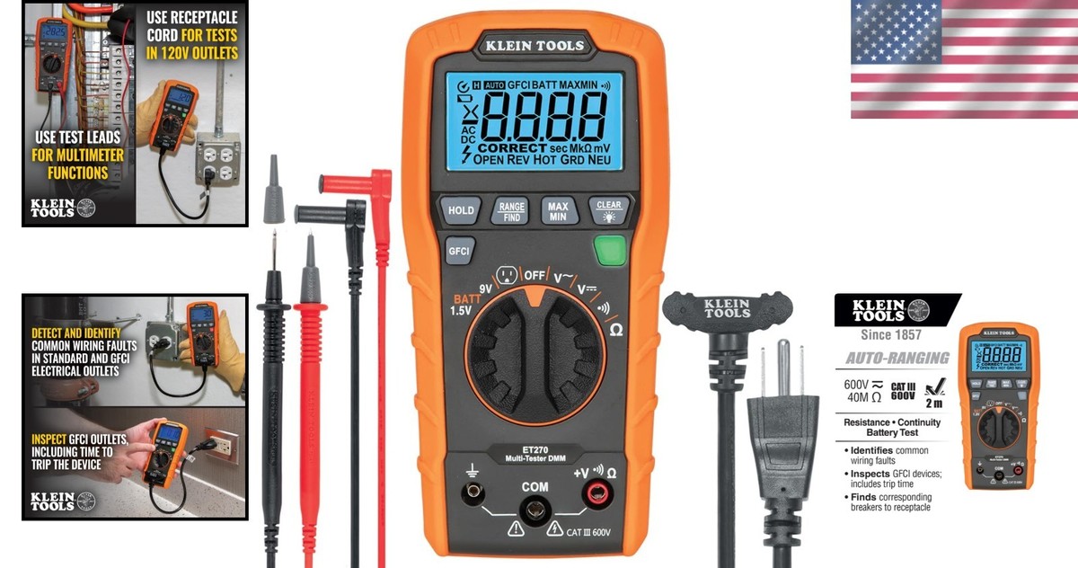 Professional Multi-Tester: Measures AC/DC, Resistance, GFCI - Complete Kit
