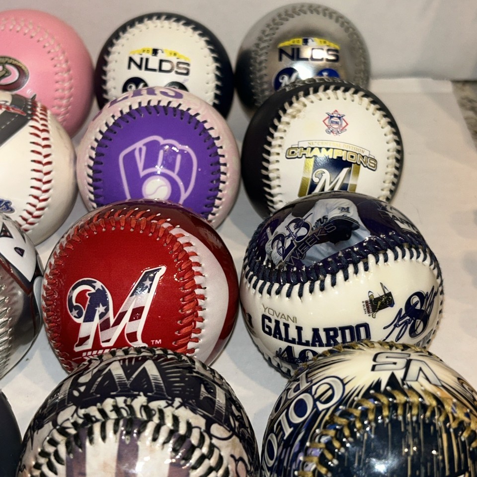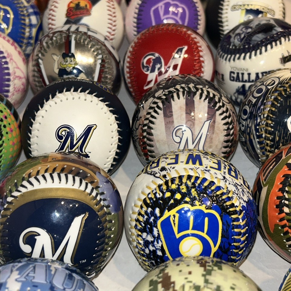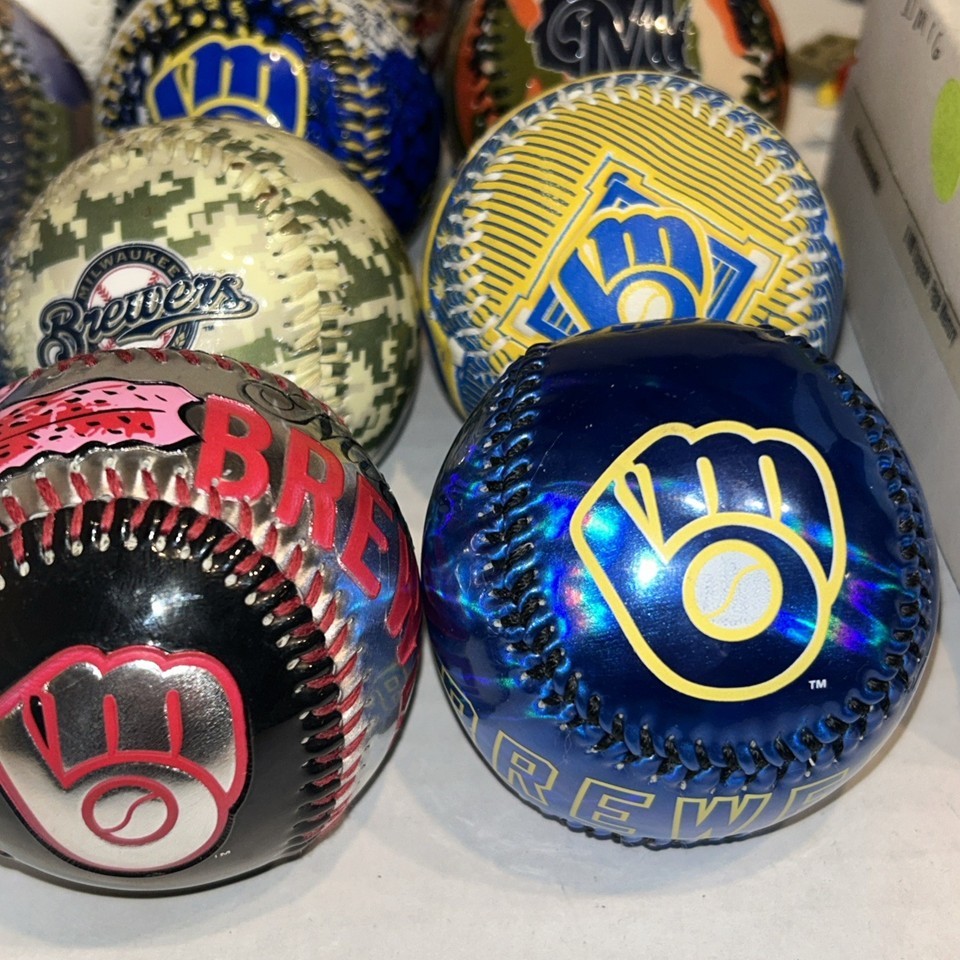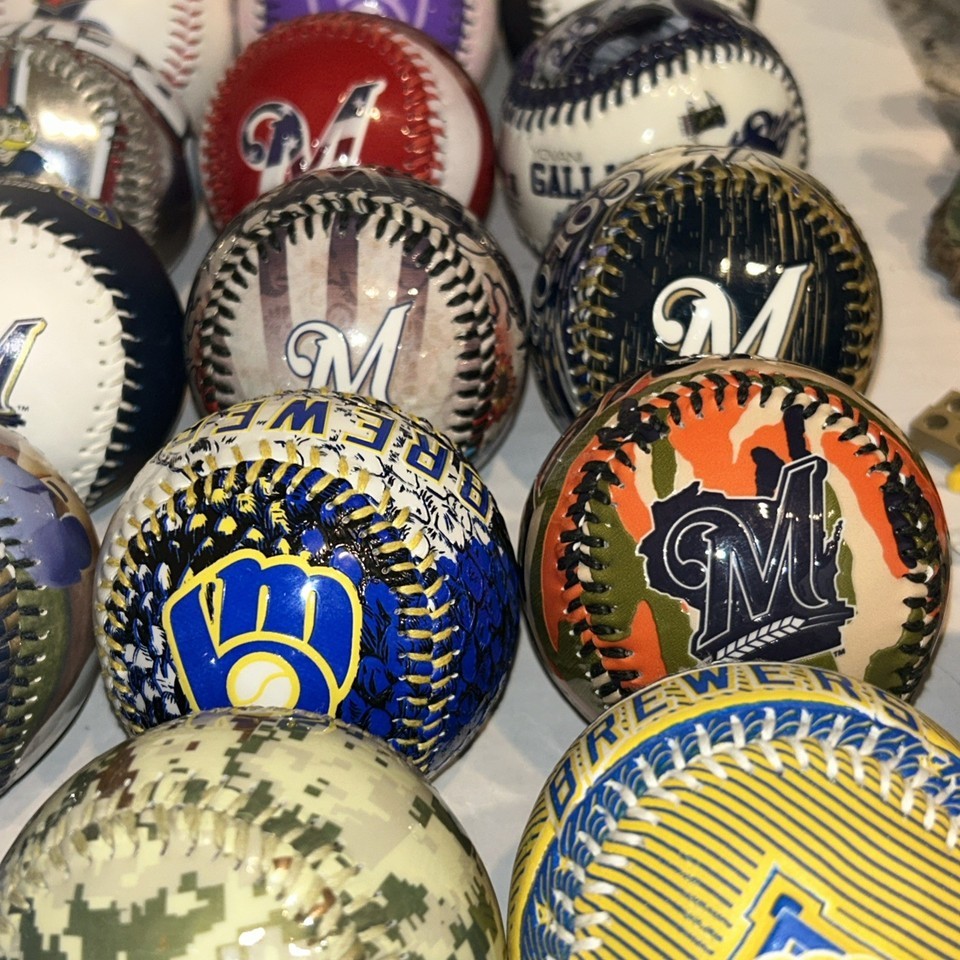 Has some opening day and opening series balls in the lot each one featuring the Brewers.