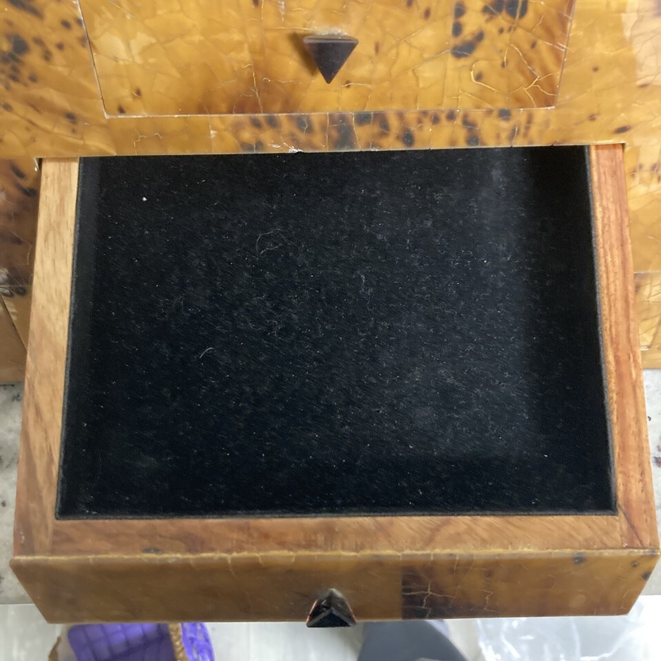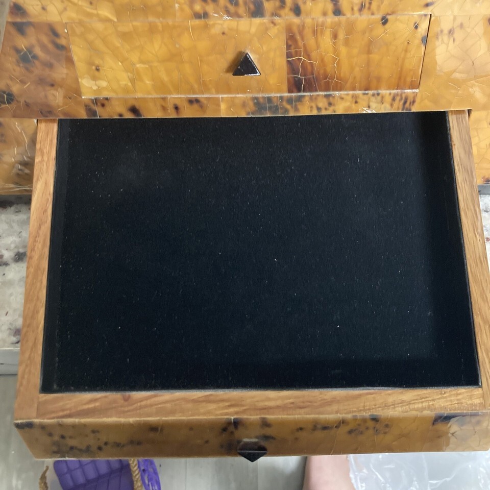 This piece has some wear on one edge as seen in the pictures. Also, the bottom of drawer gets stuck and you have to push on the bottom of the piece to release it.