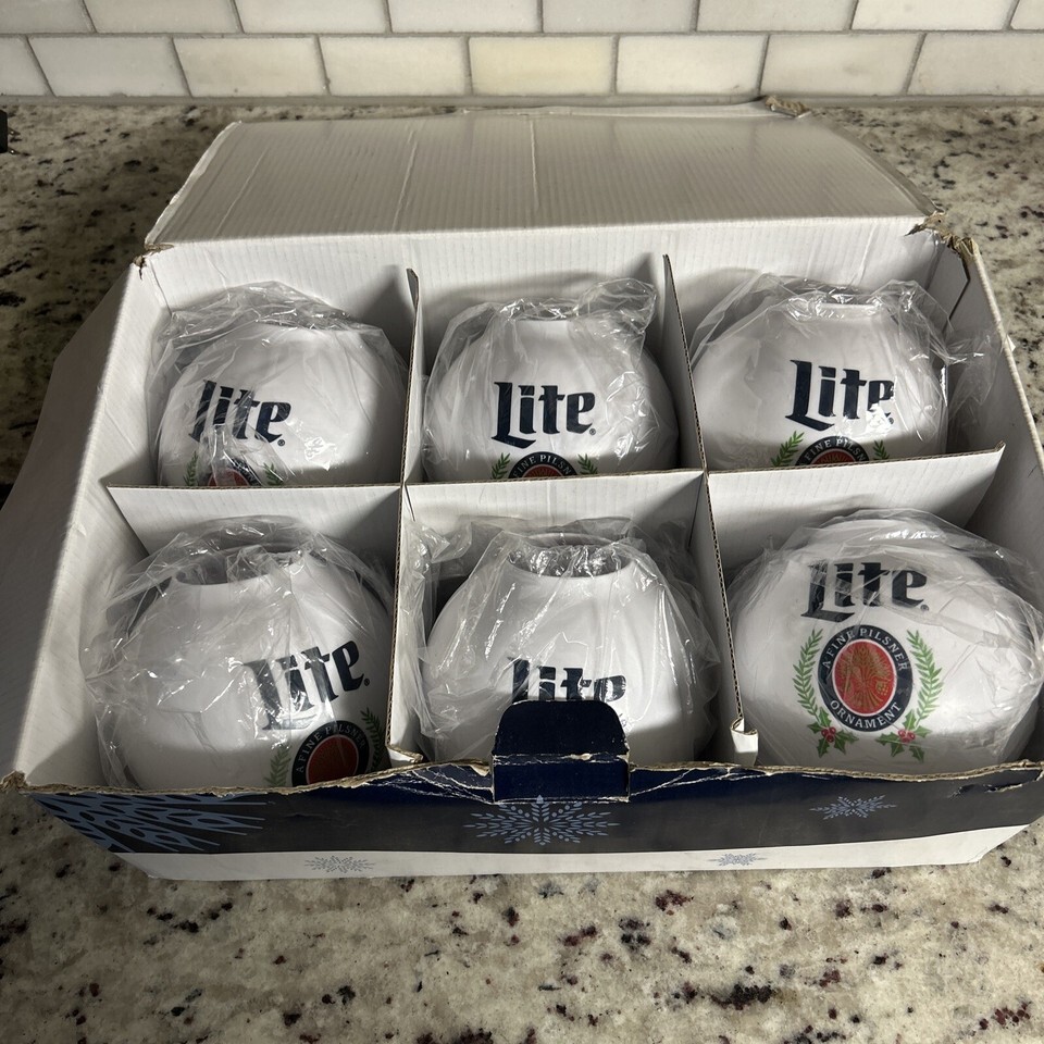 Miller Lite Beernament Christmas Ornament Set 6 Holiday Party Essential Koozie