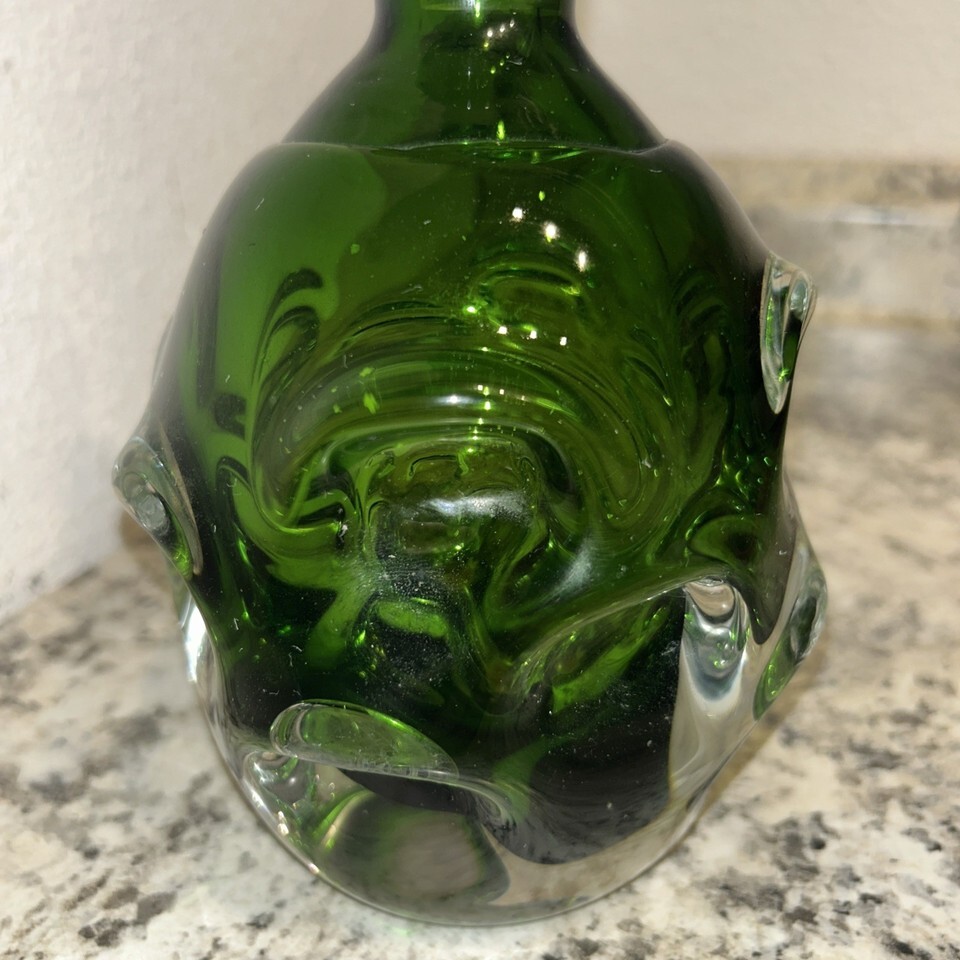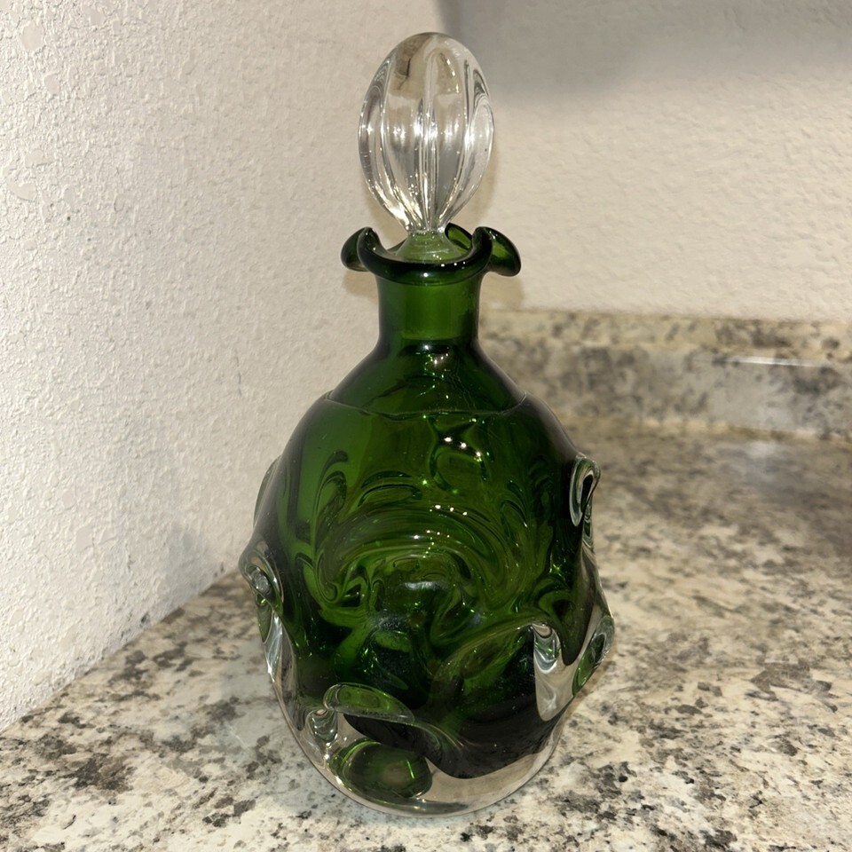 Sweden Aseda Borne Augustsson * Art Glass * Heavy Green Decanter w Stopper 0104