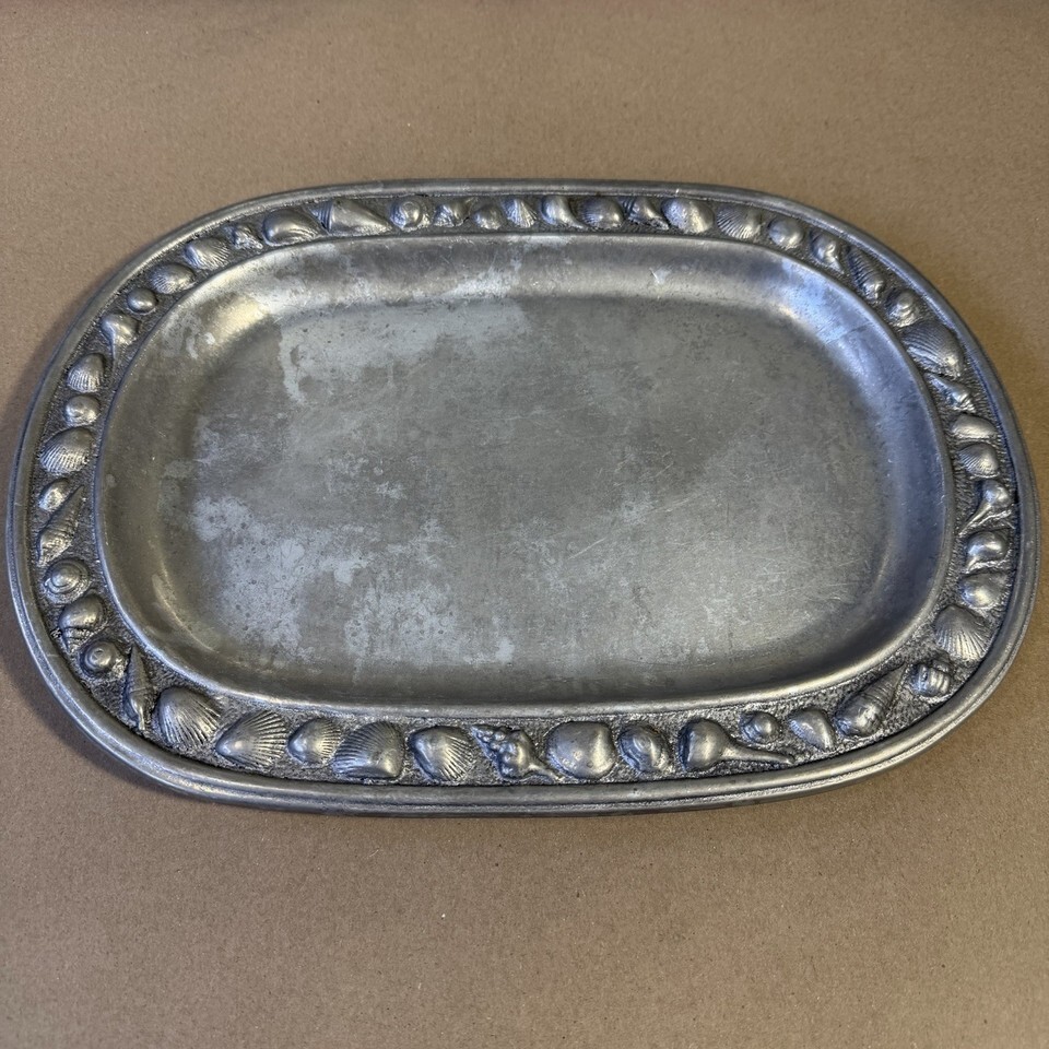 Vintage Wilton Armetale Shell Oval Platter Pewter Embossed Seashell Edge 9.75x13
