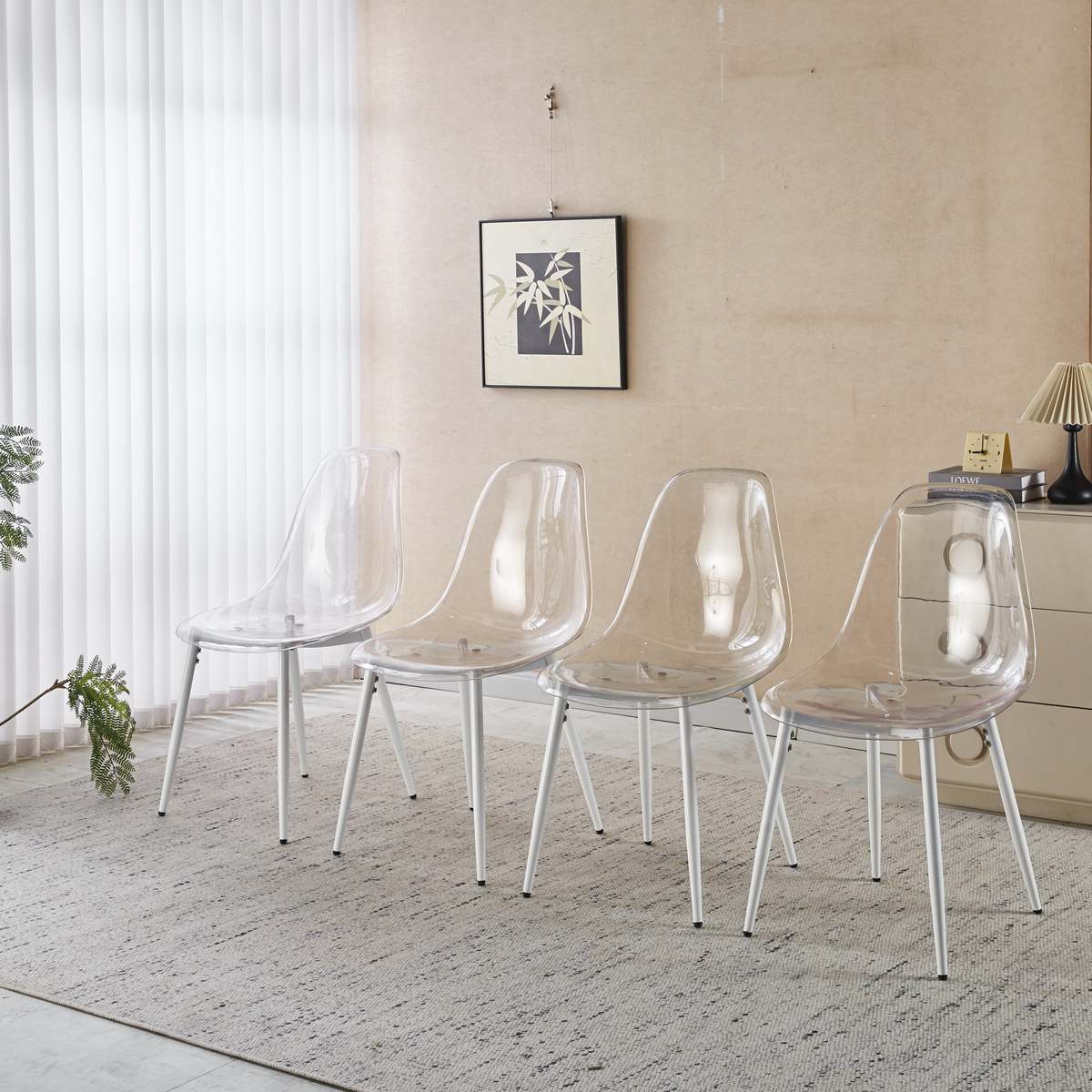 Mid-Century White Dining Set 4-6, Metal Leg MDF Table Top