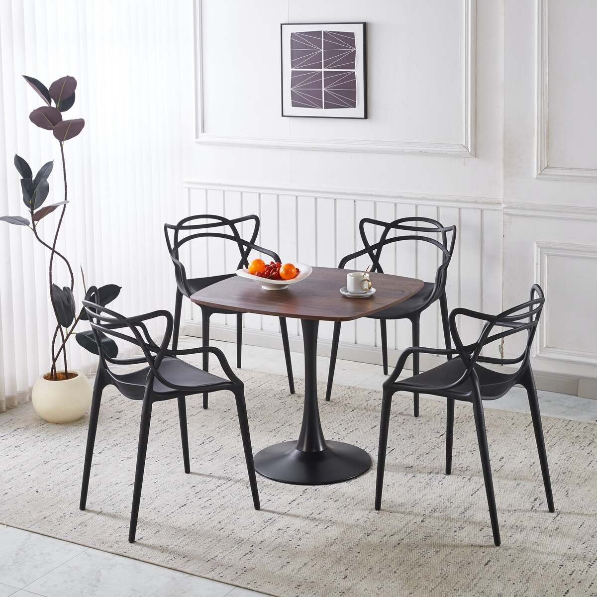 Mid-Century Pedestal Dining Set 4-6, Metal Leg MDF Top Table