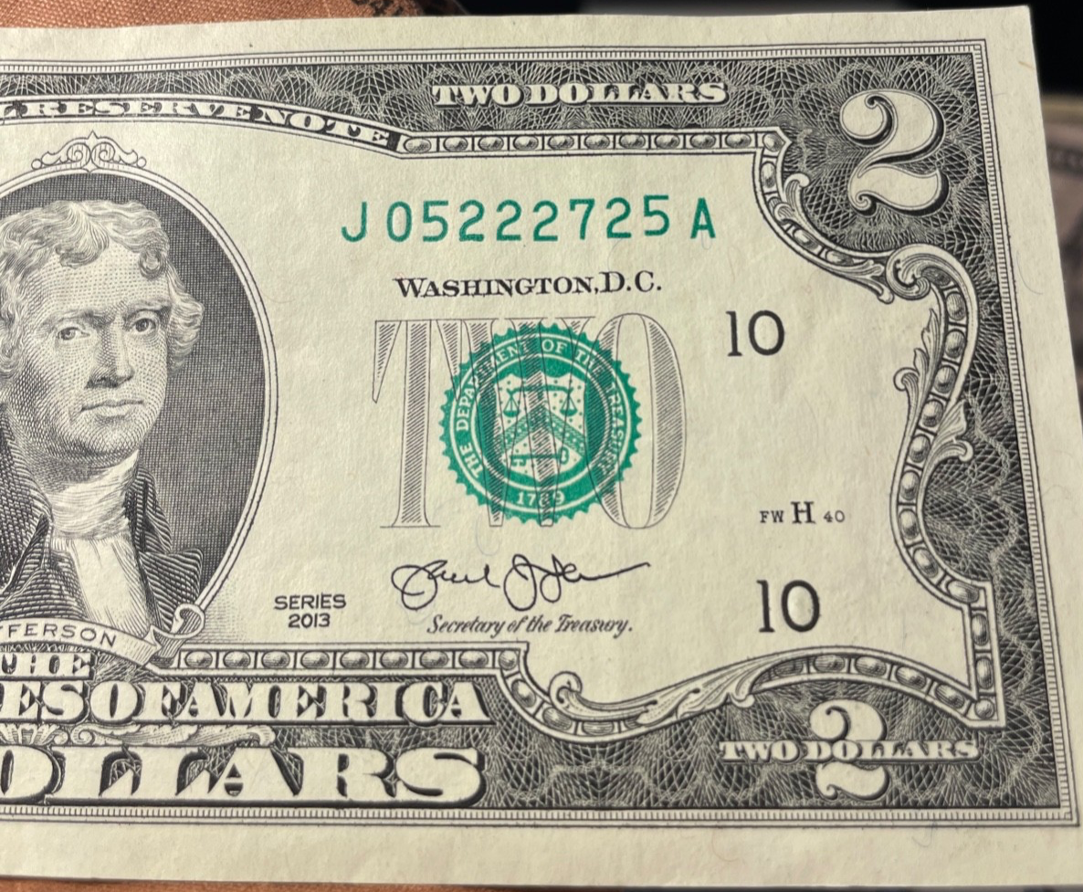 $2 BILL 2013 Trip 2s #J 05222725 A