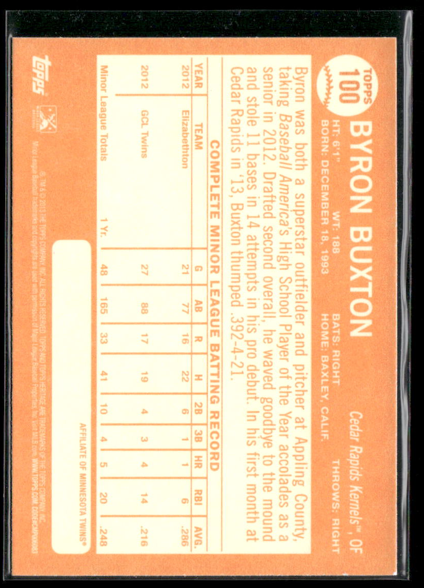 2013 Topps Heritage Minor League #100 Byron Buxton Rookie