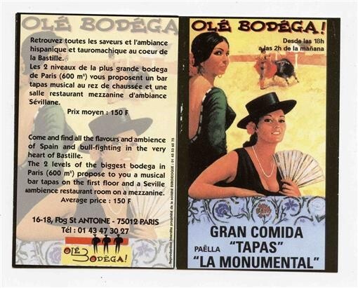 Ole Bodega Restaurant Gran Comida Tapas Card Paris France Paella La Monumental