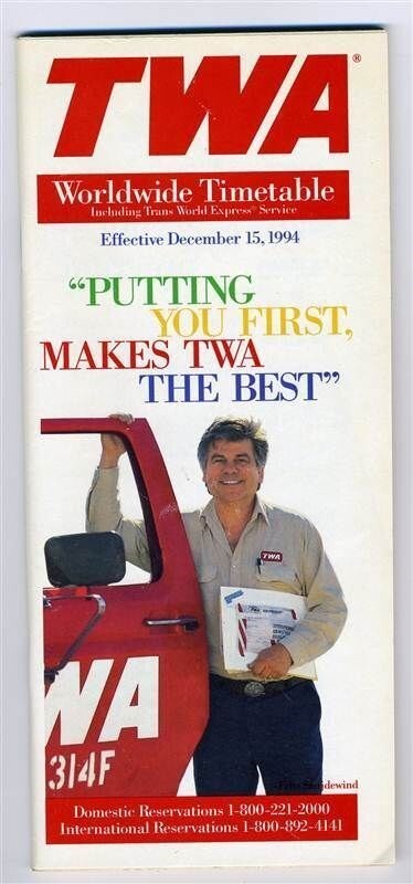 TWA Worldwide Timetable December 1994 Trans and similar items