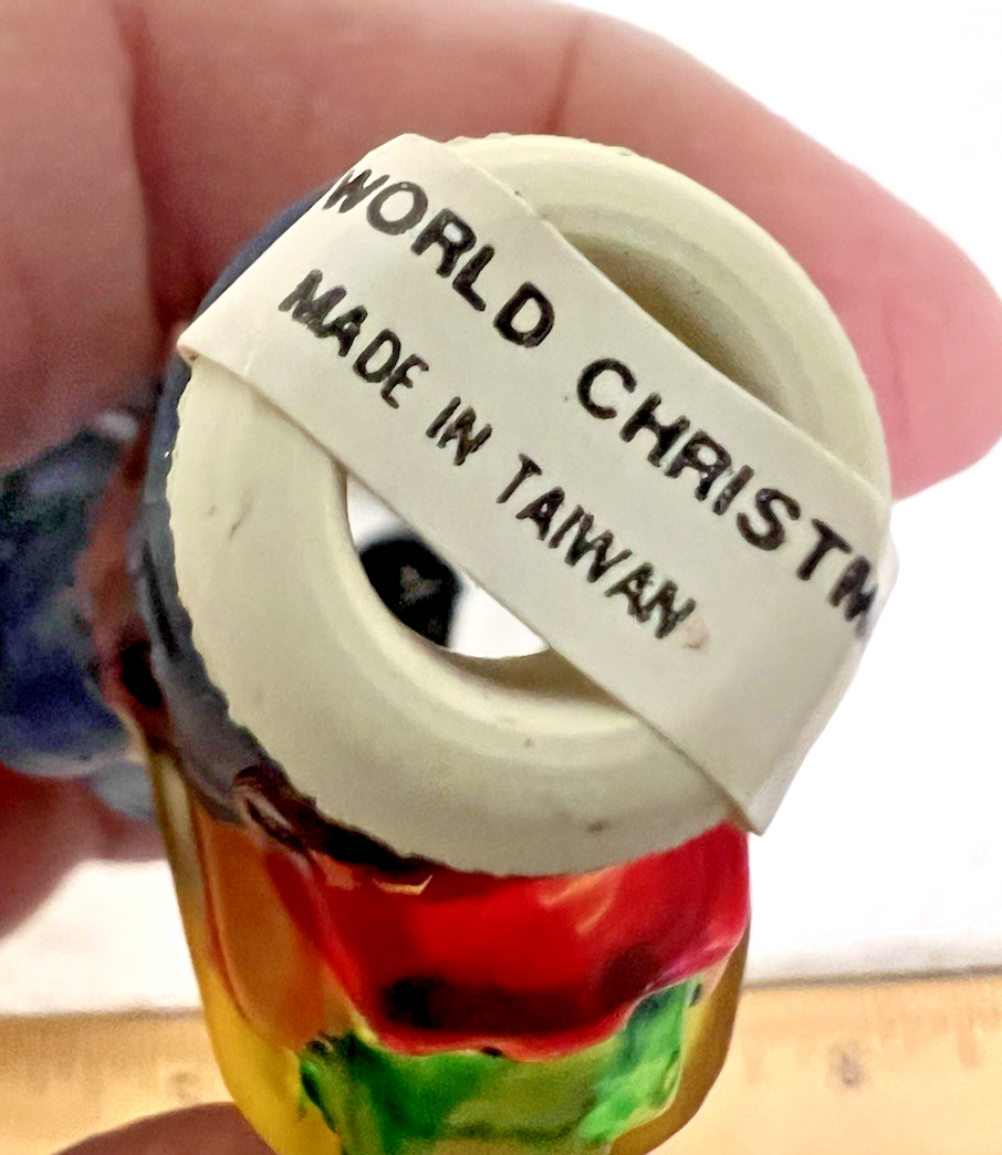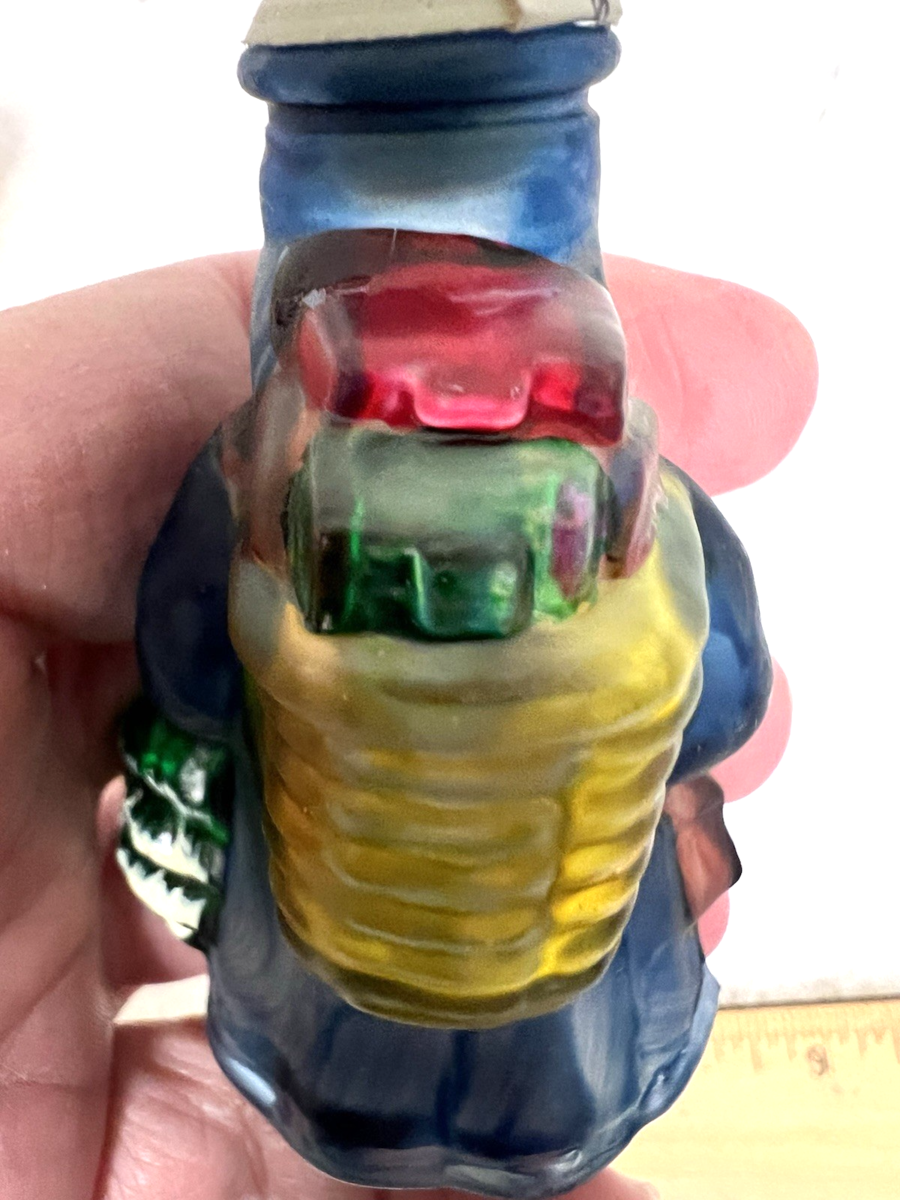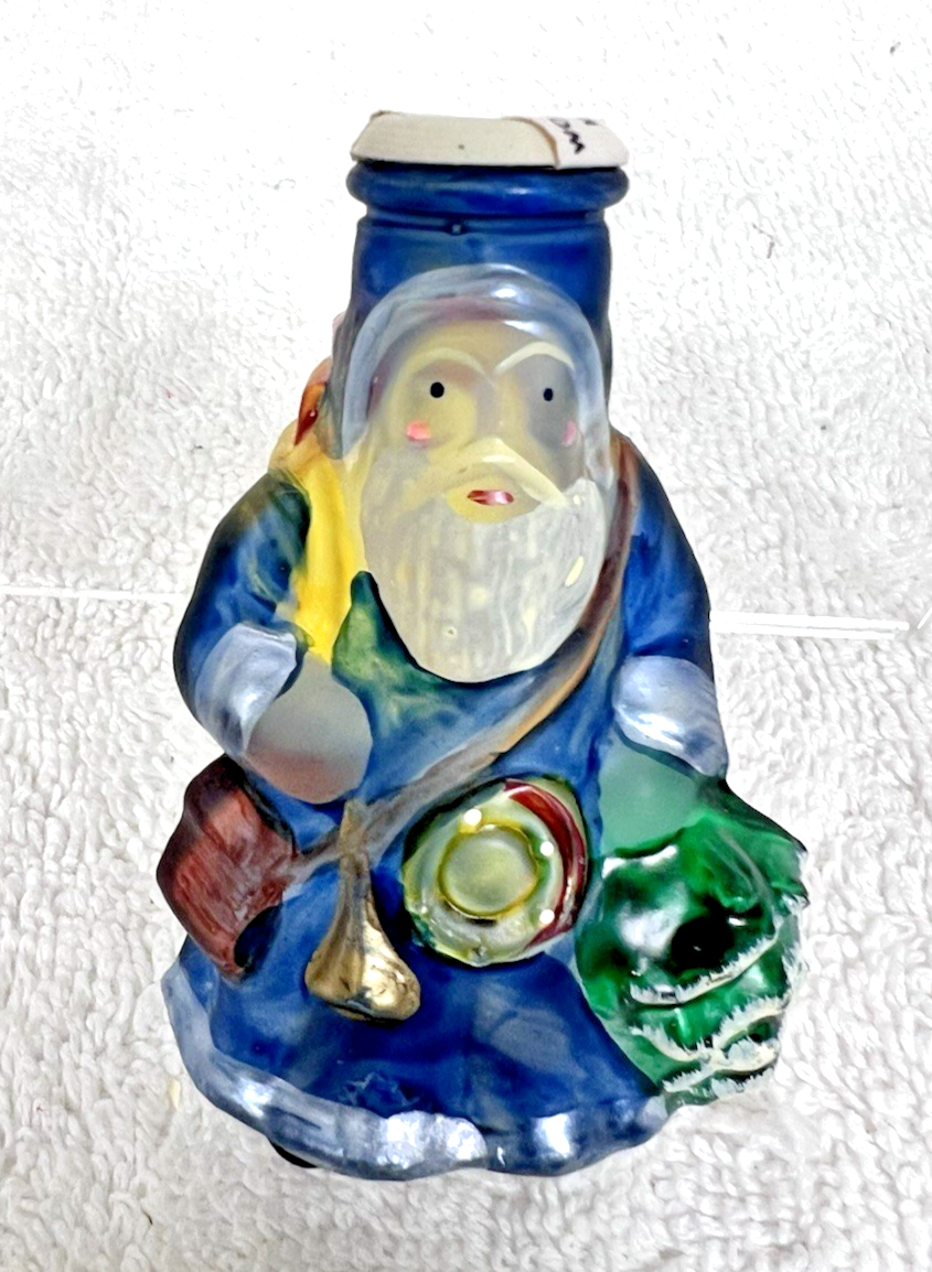 Old World Christmas Ornament Blue Santa Tree Glass Light Cover Hand Painted Sticker 3". Unused 3" Blue Santa Claus holding tree and bag with presents light cover, across the opening for the light is the original sticker so never used. Paint coloring in very good condition no wear I see. See pictures.